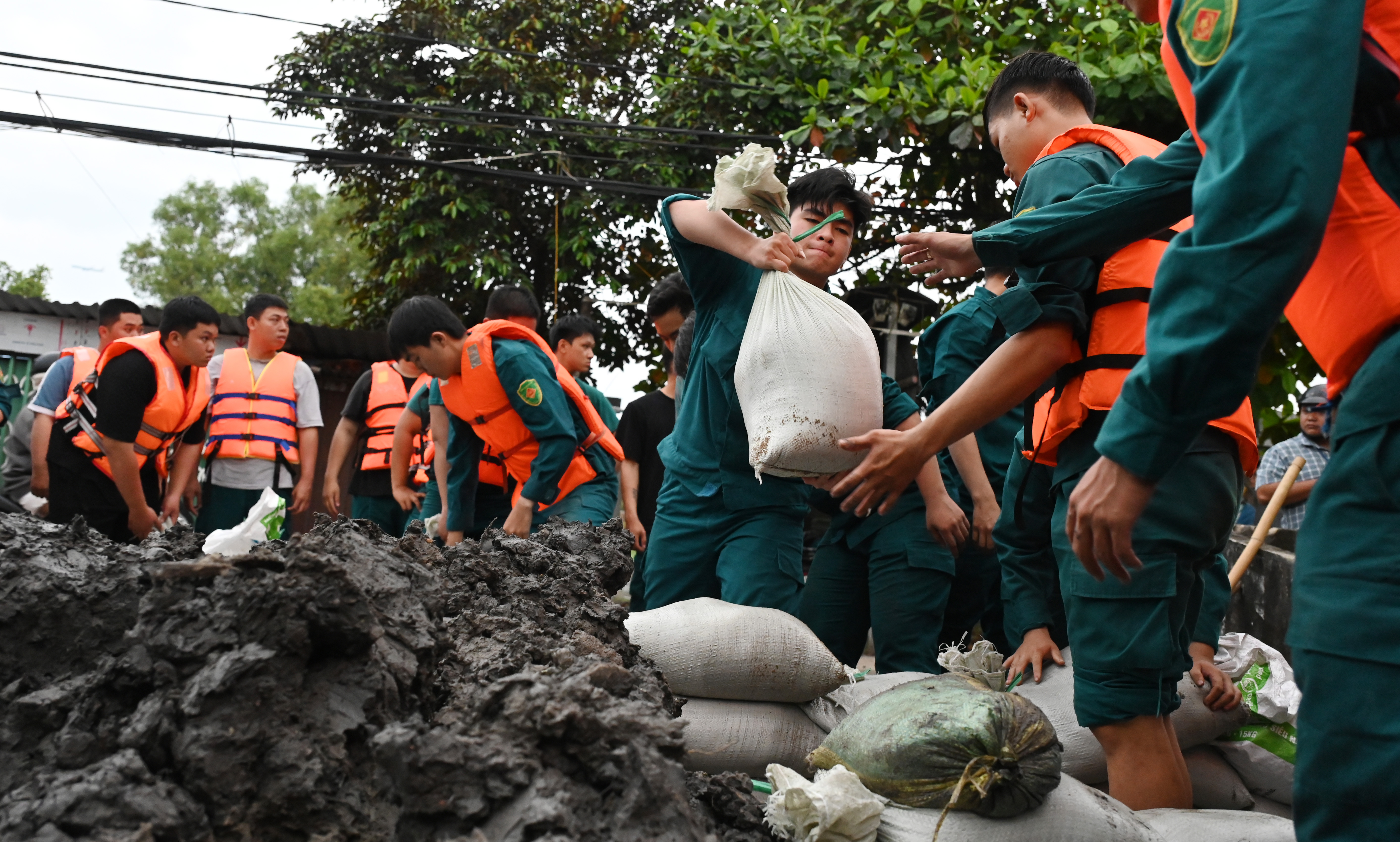 Người dân và các lực lượng gồng mình ngăn triều cường