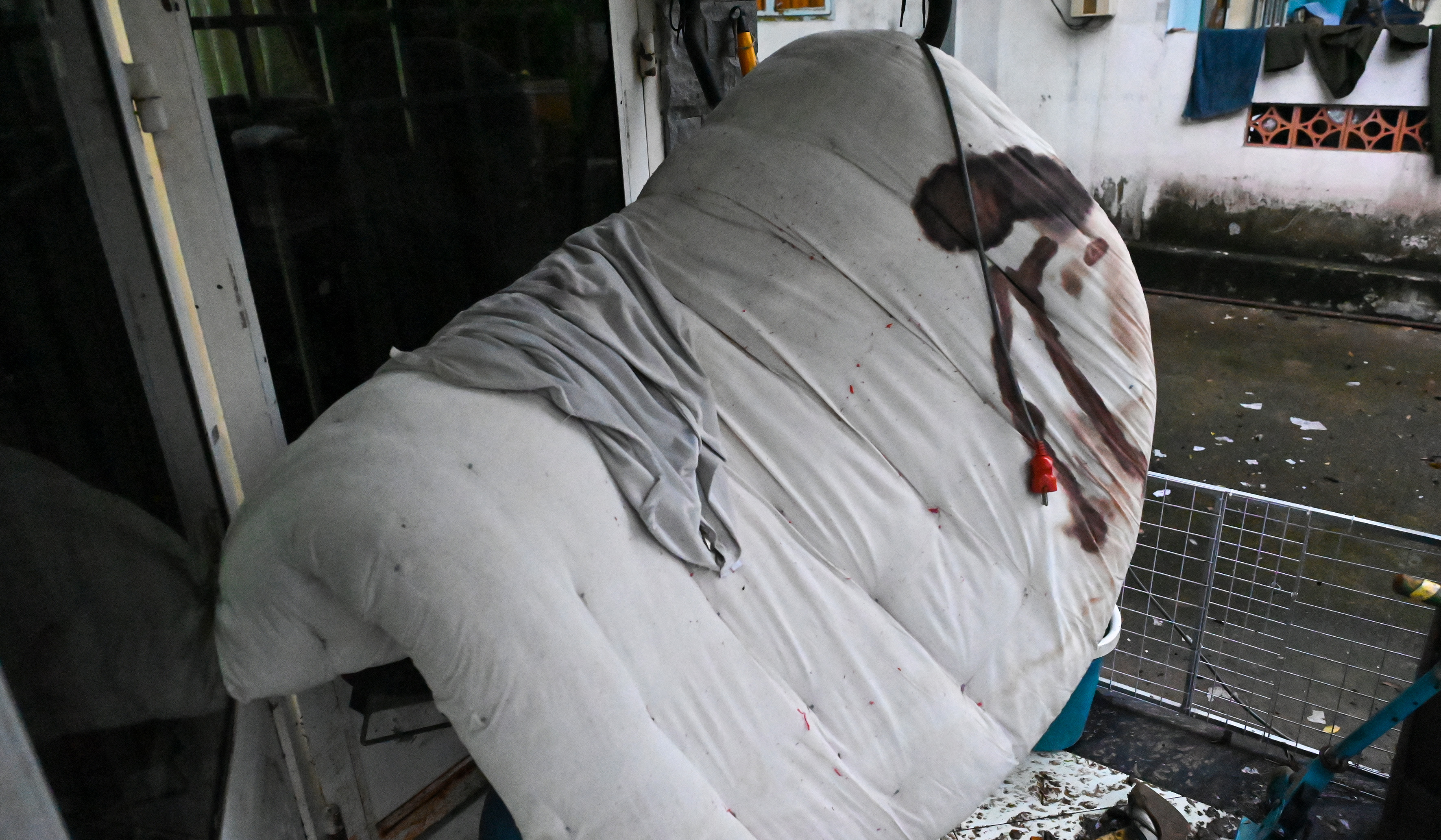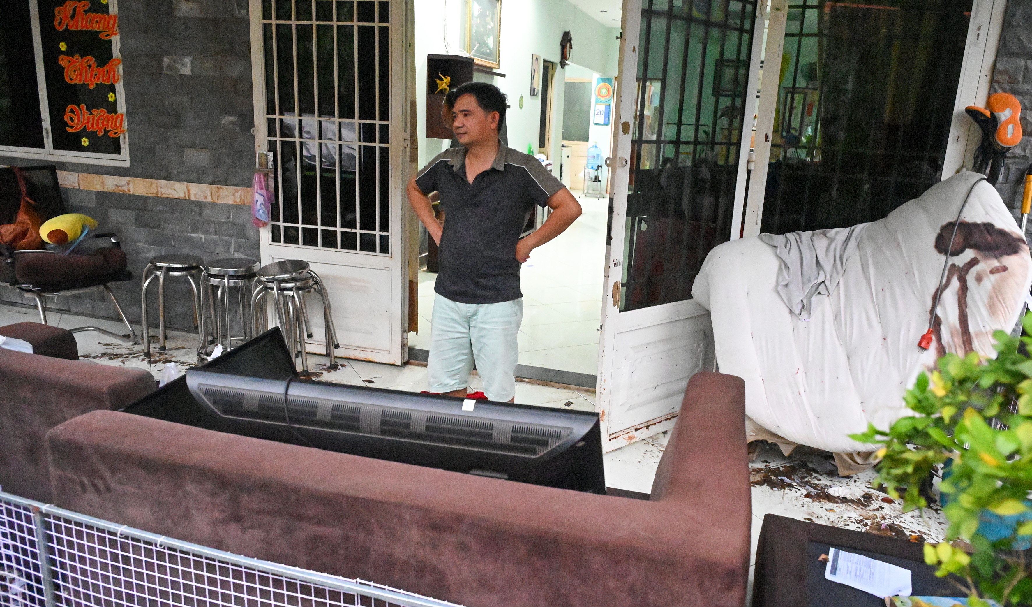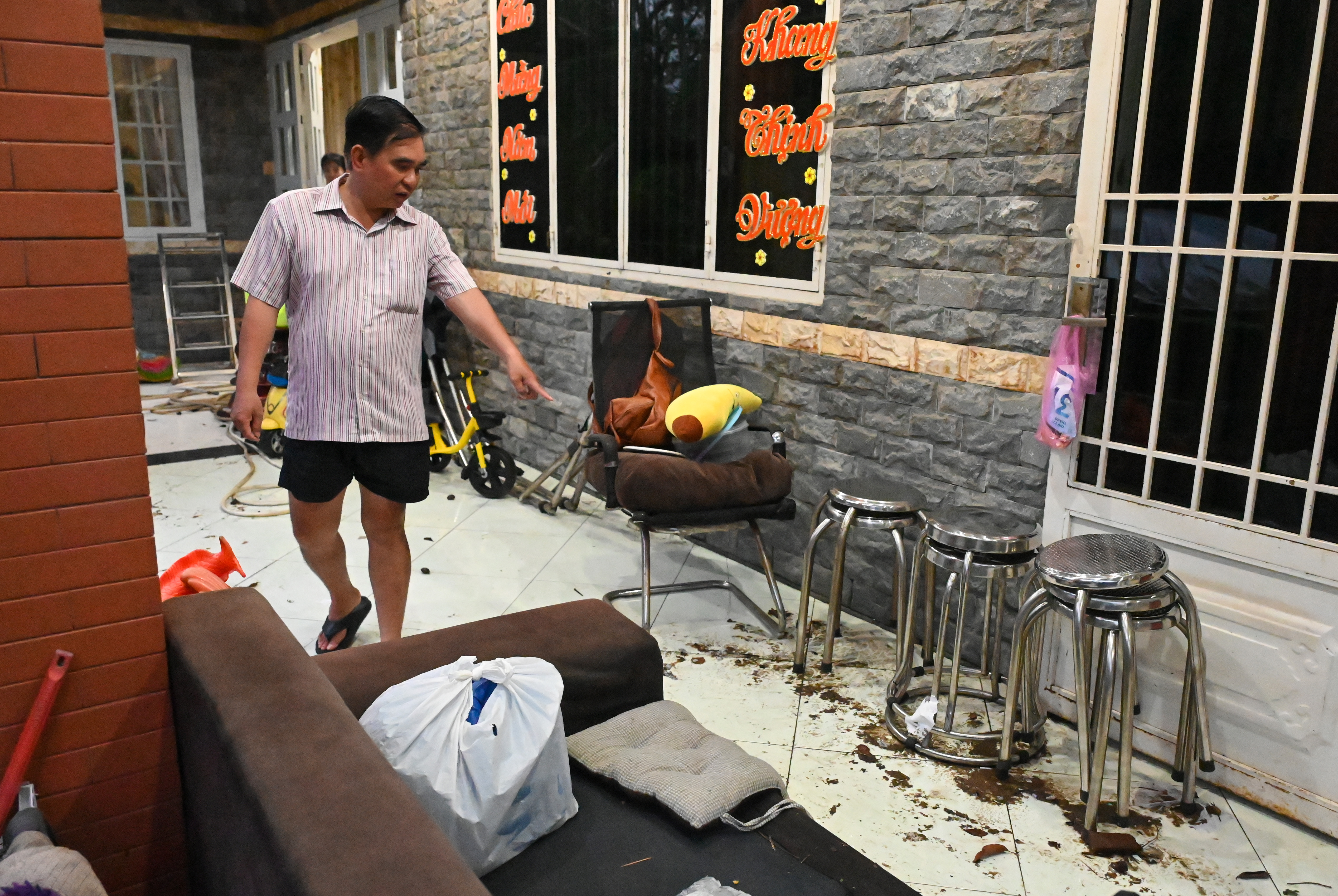 Chiều 24-10, ông Nguyễn Thủy Thạch thất thần trước cảnh đồ đạc trong nhà bị hư hỏng nặng