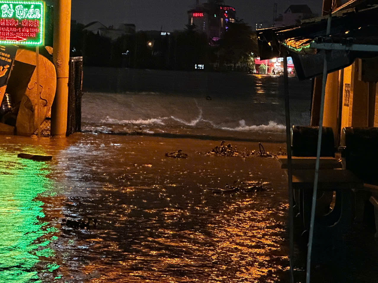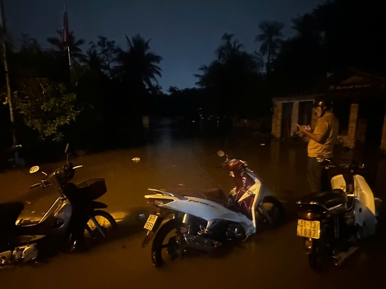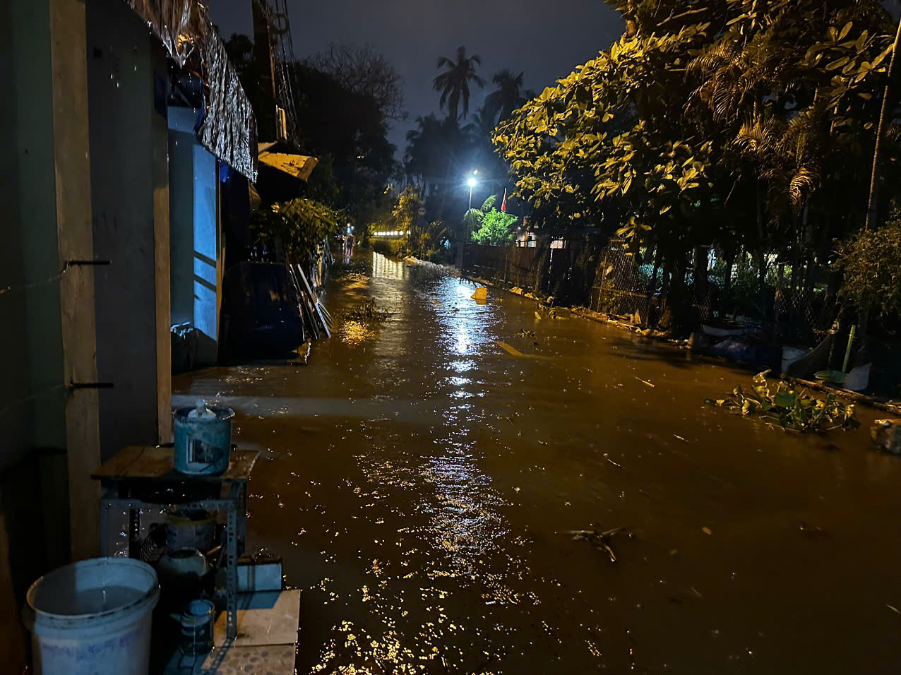 Đến khoảng 18 giờ 40 phút, nước từ kênh rạch dâng cao và bắt đầu tràn vào các khu vực dân cư