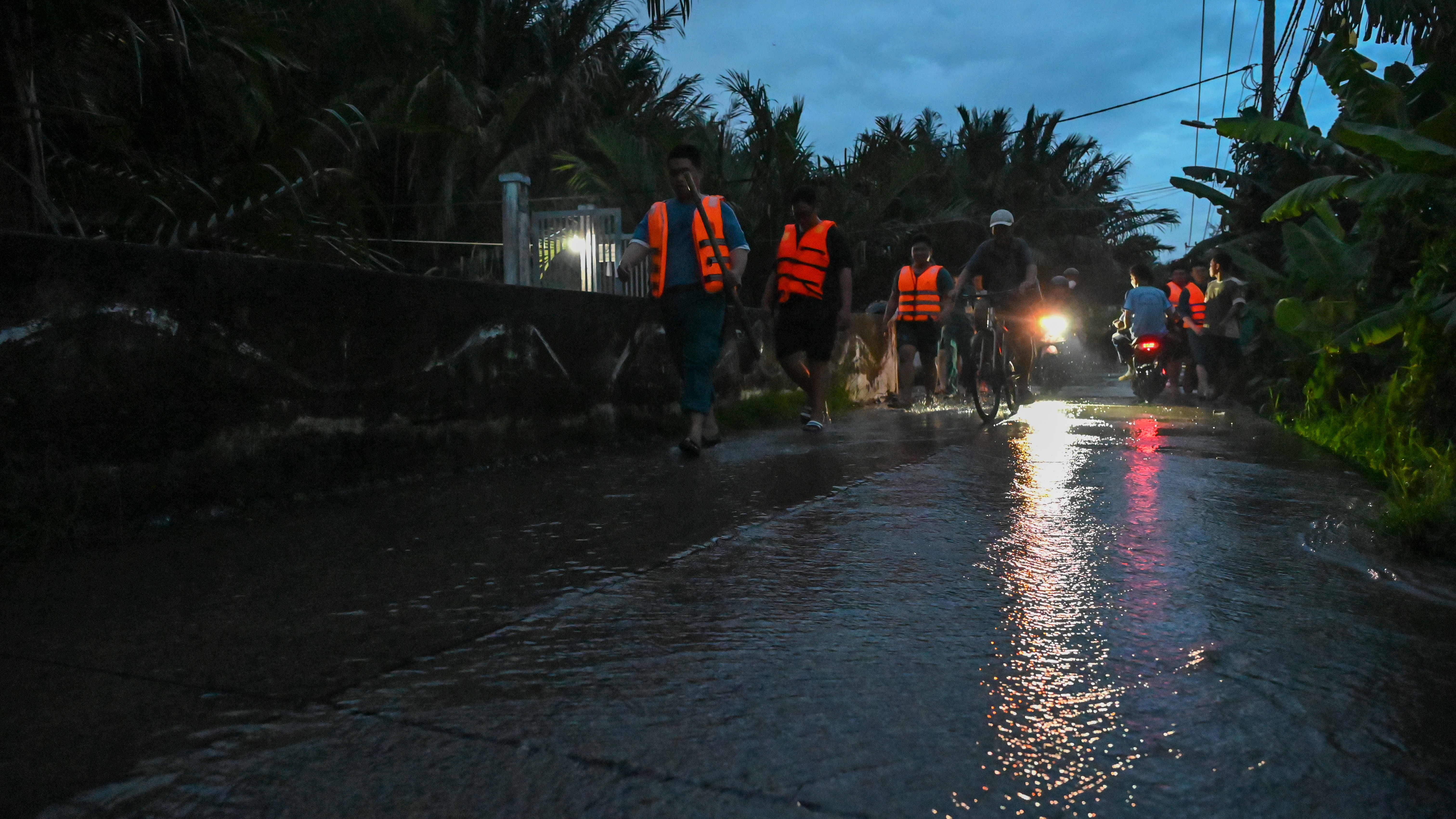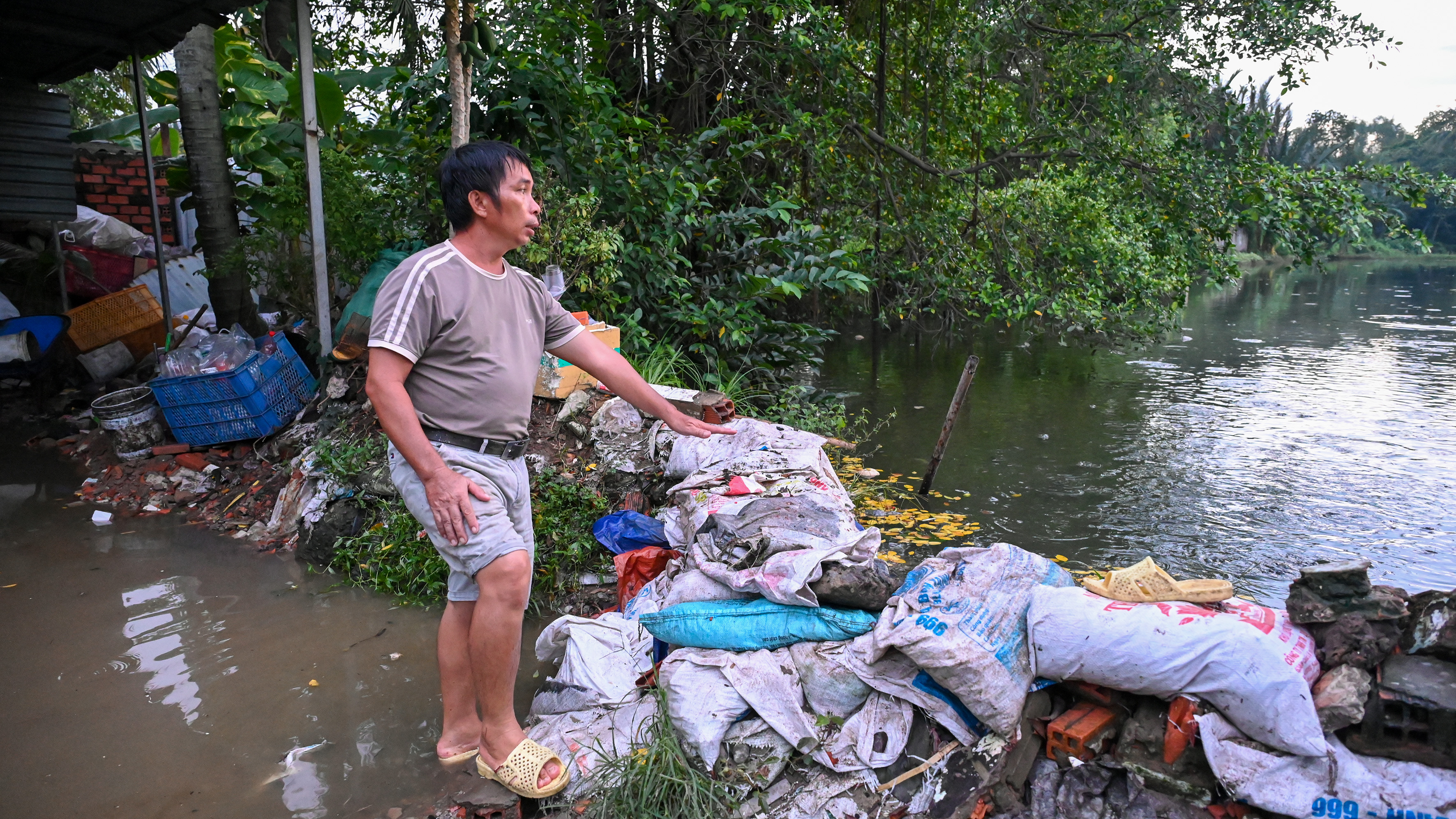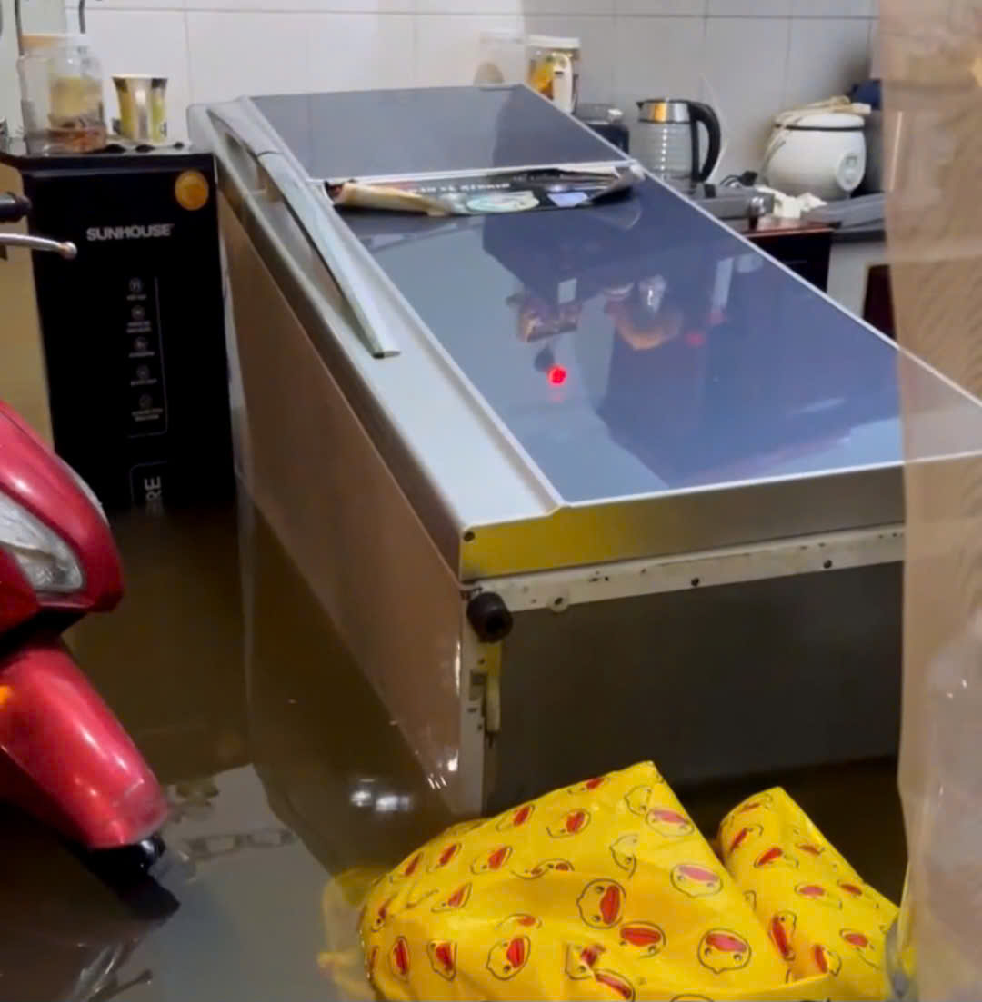 Đến khoảng 18 giờ 40 phút, nước từ kênh rạch dâng cao và bắt đầu tràn vào các khu vực dân cư