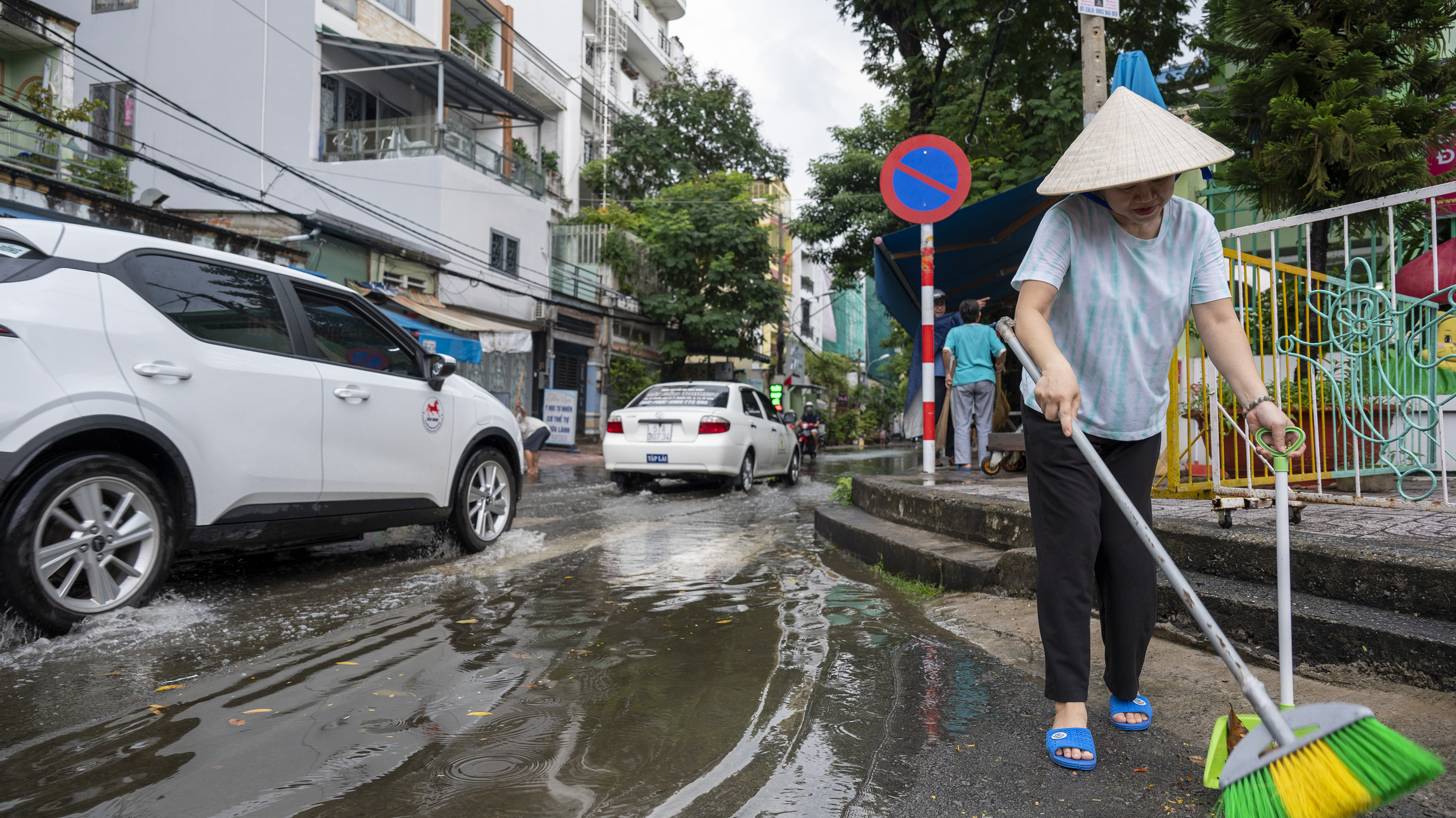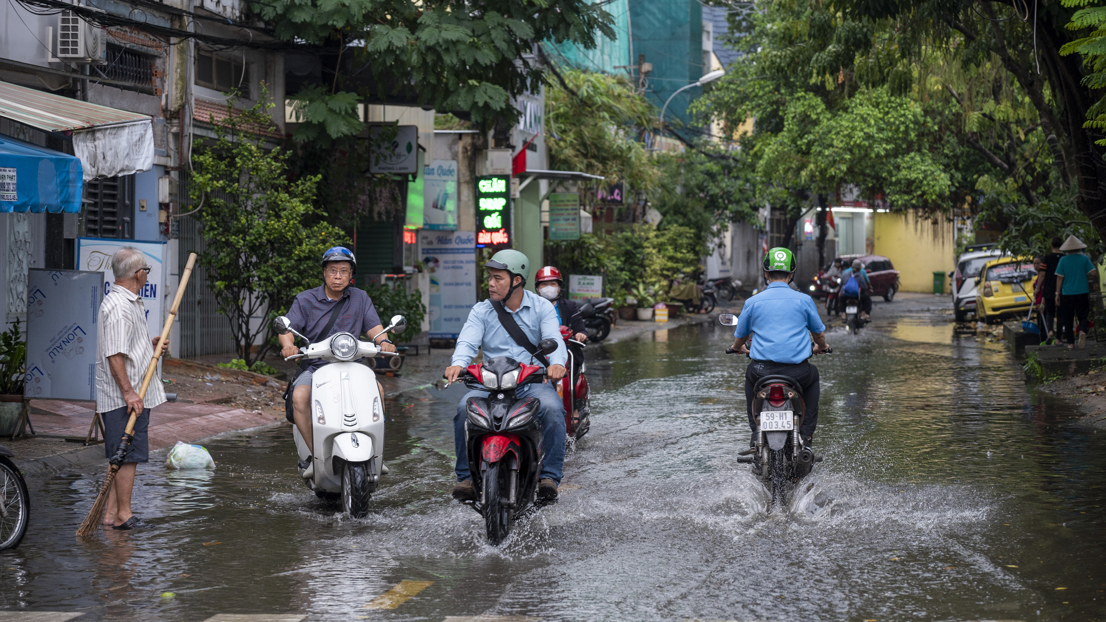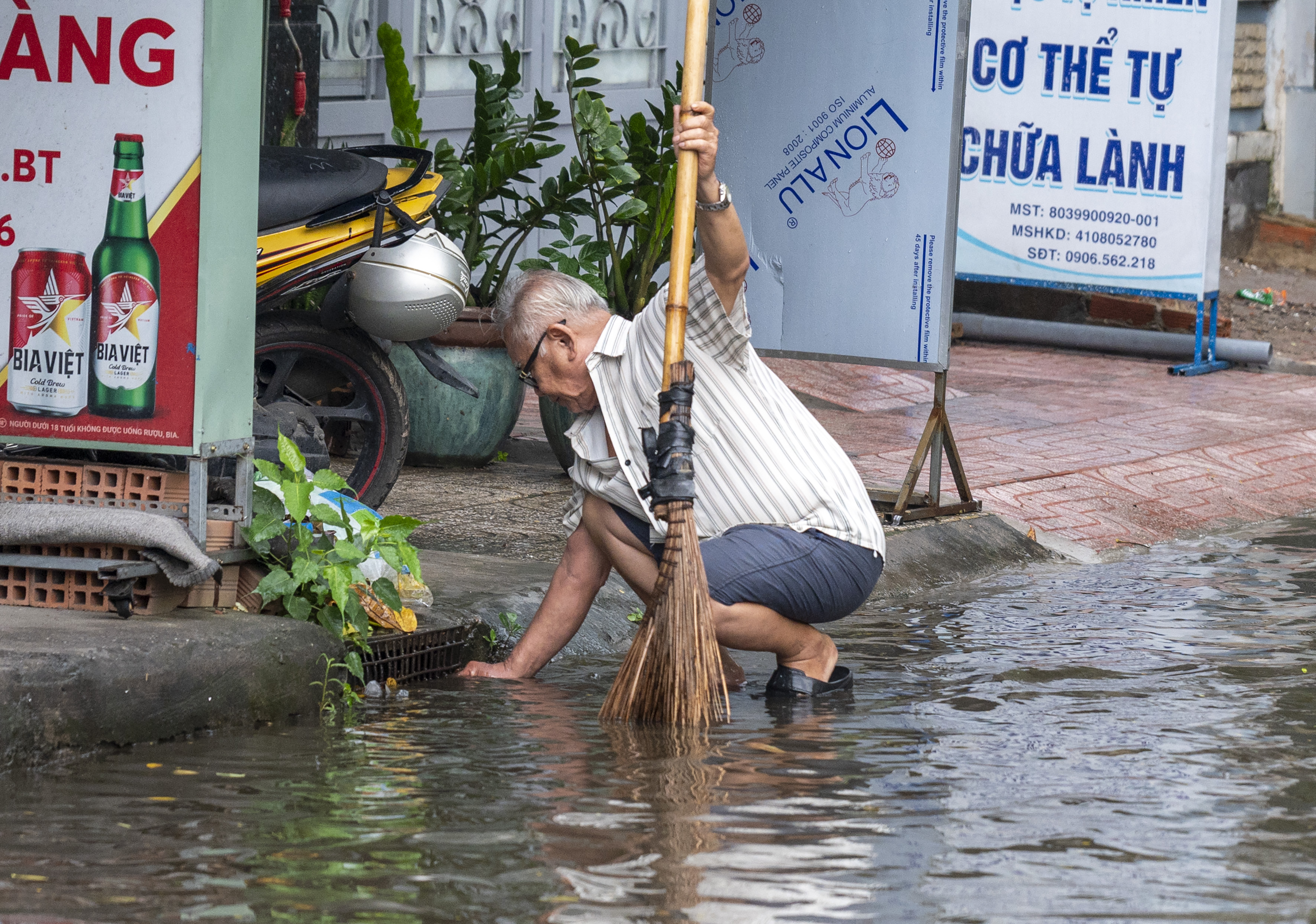 Một tuyến đường tại khu vực Thanh Đa nước vẫn chưa thoát hết sau triều cường tối 23-10