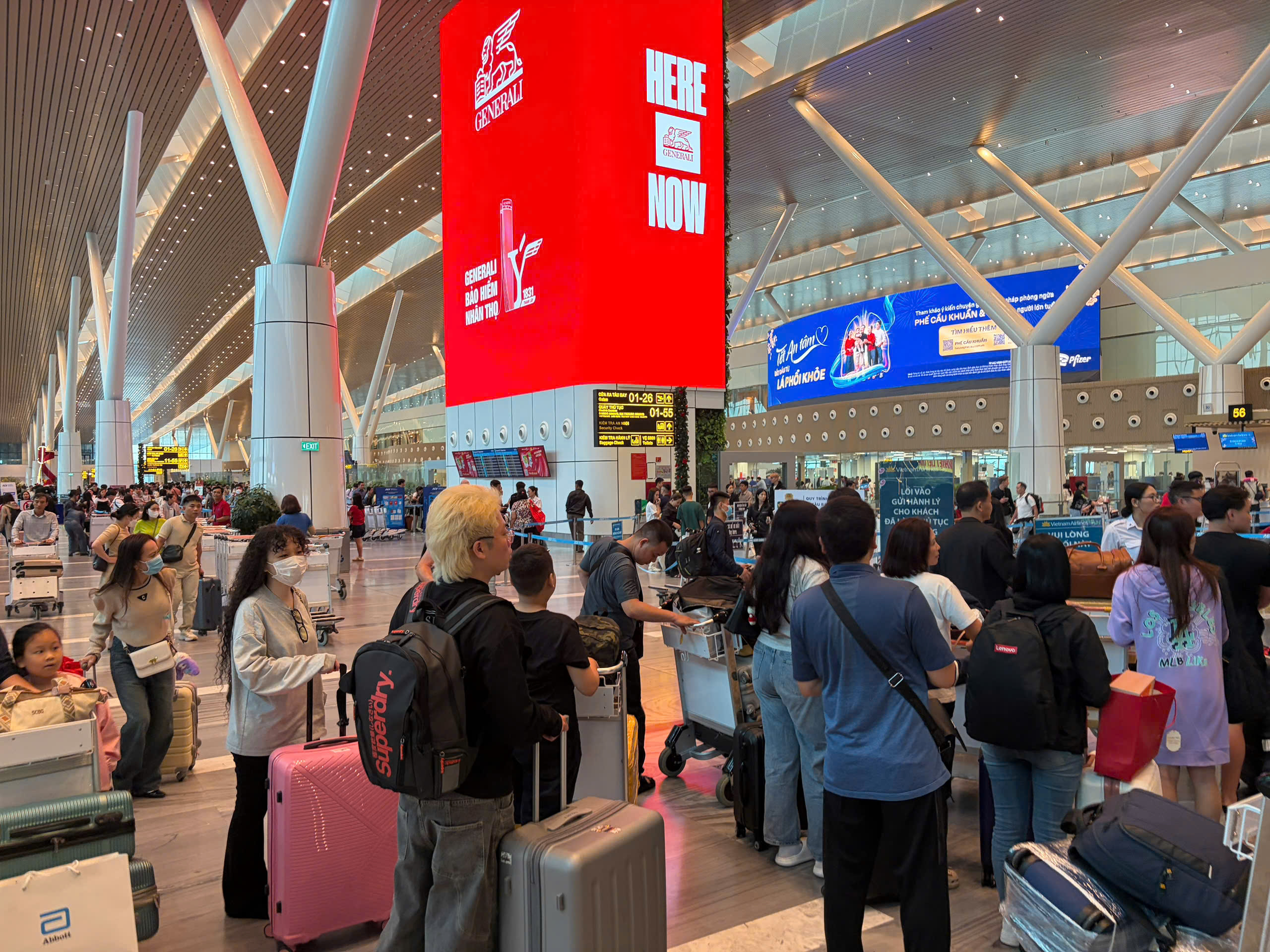Hành khách chờ làm thủ tục rất đông tại nhà ga T3, sân bay Tân Sơn Nhất. Ảnh: QUỐC HÙNG