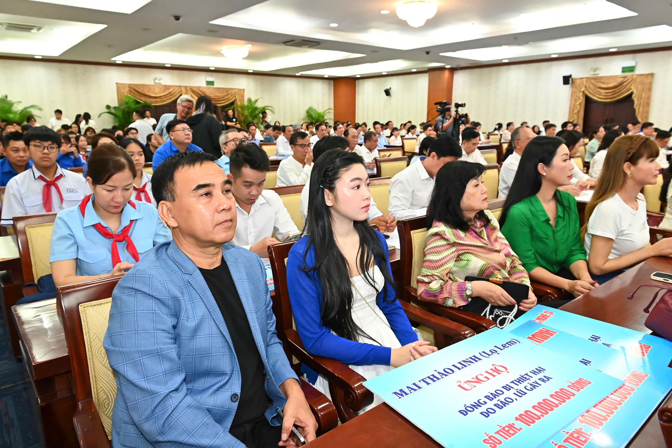 Đại diện các cơ quan, đơn vị, địa phương đến dự và ủng hộ đồng bào bị thiệt hại do bão số 10 gây ra. Ảnh: VIỆT DŨNG