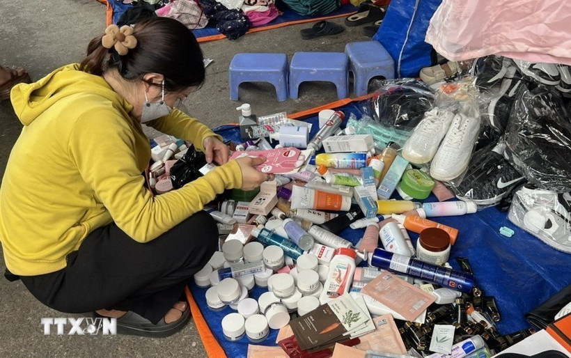Mỹ phẩm, hàng hóa kém chất lượng được bày bán tràn lan trên đường tại TPHCM. Ảnh: TTXVN