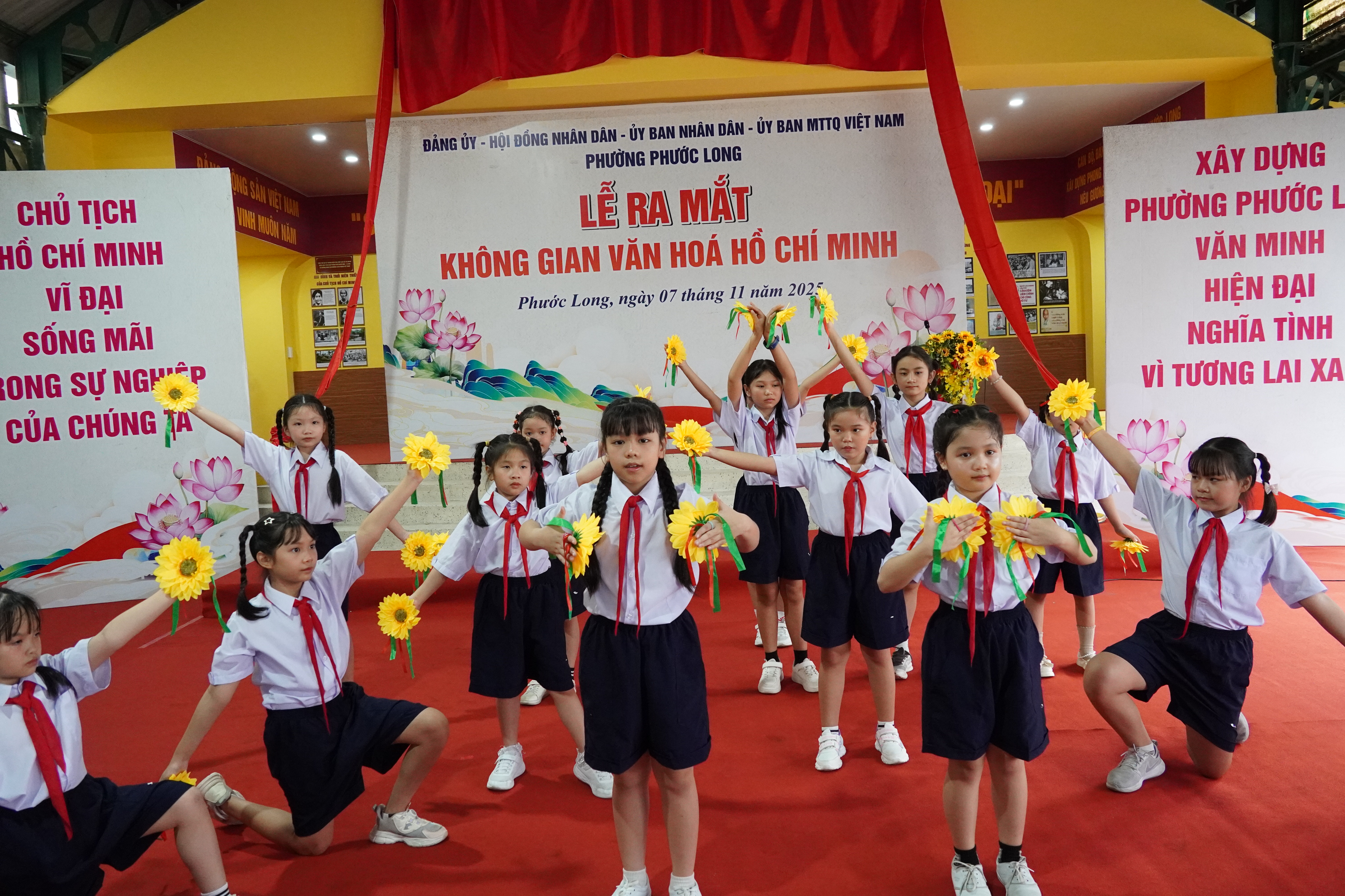 Các em học sinh biểu diễn văn nghệ tại lễ ra mắt Không gian văn hóa Hồ Chí Minh