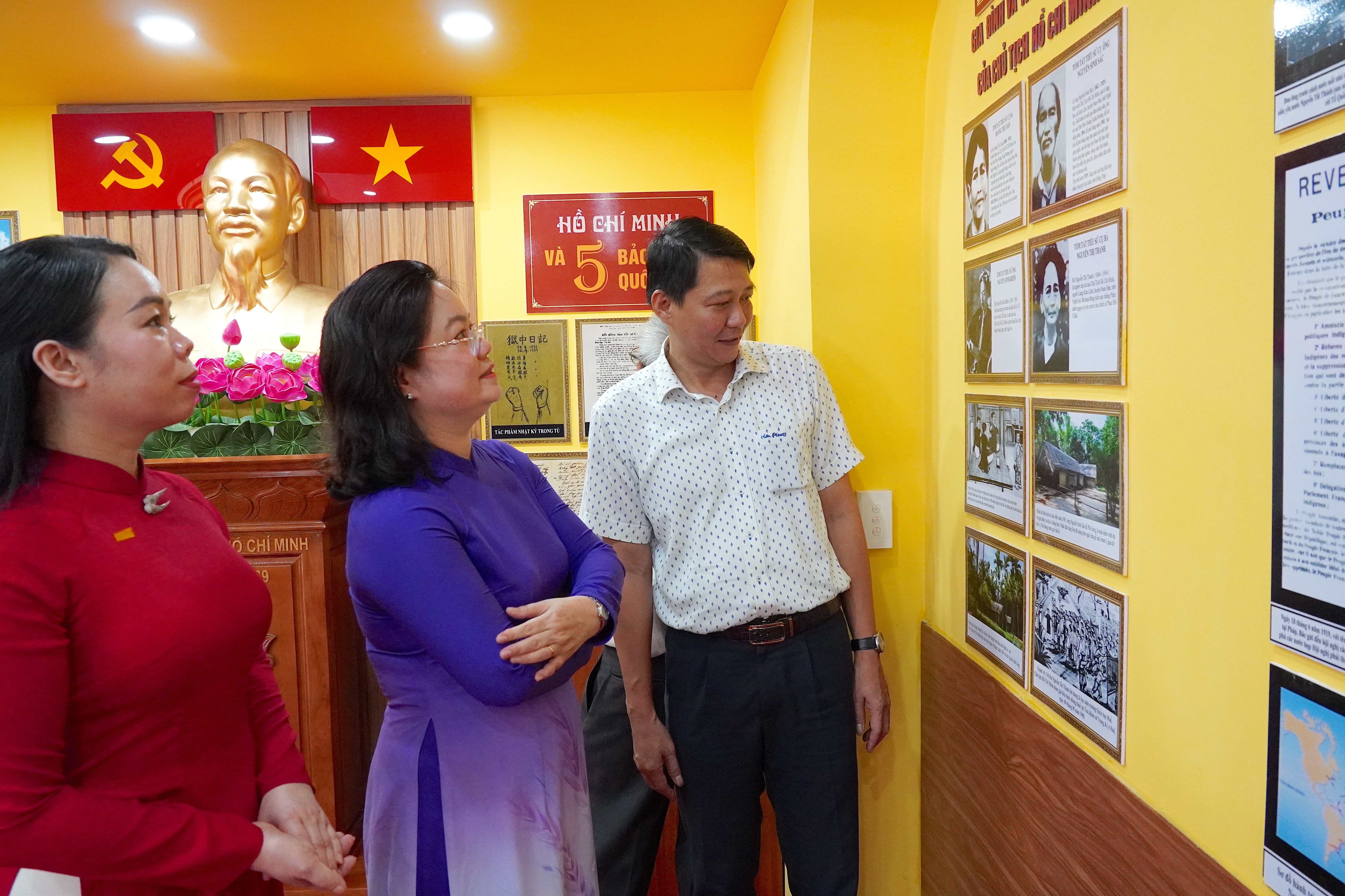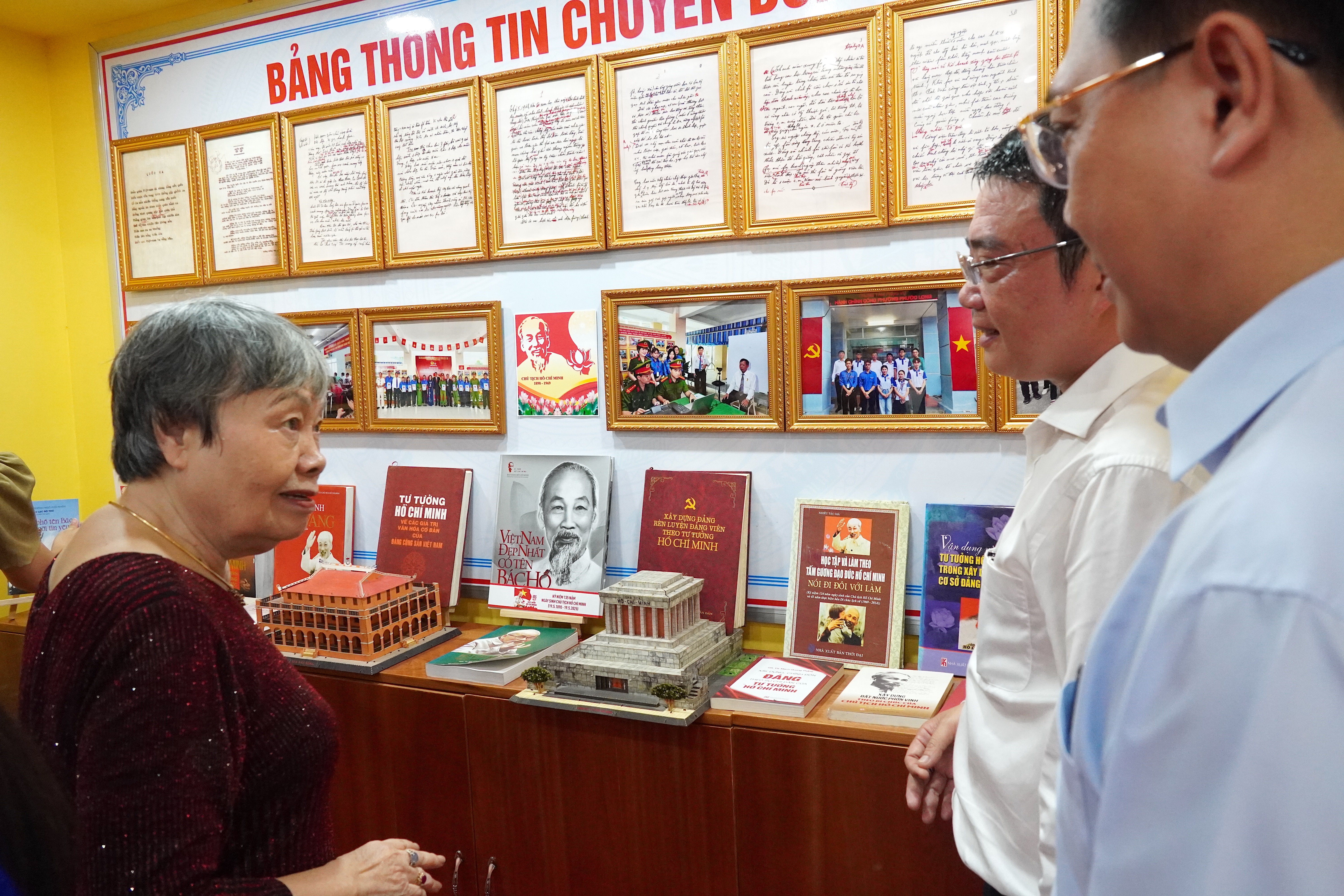 Lãnh đạo Thành ủy TPHCM và lãnh đạo Đảng ủy phường Phước Long tìm hiểu các thông tin tại Không gian văn hóa Hồ Chí Minh