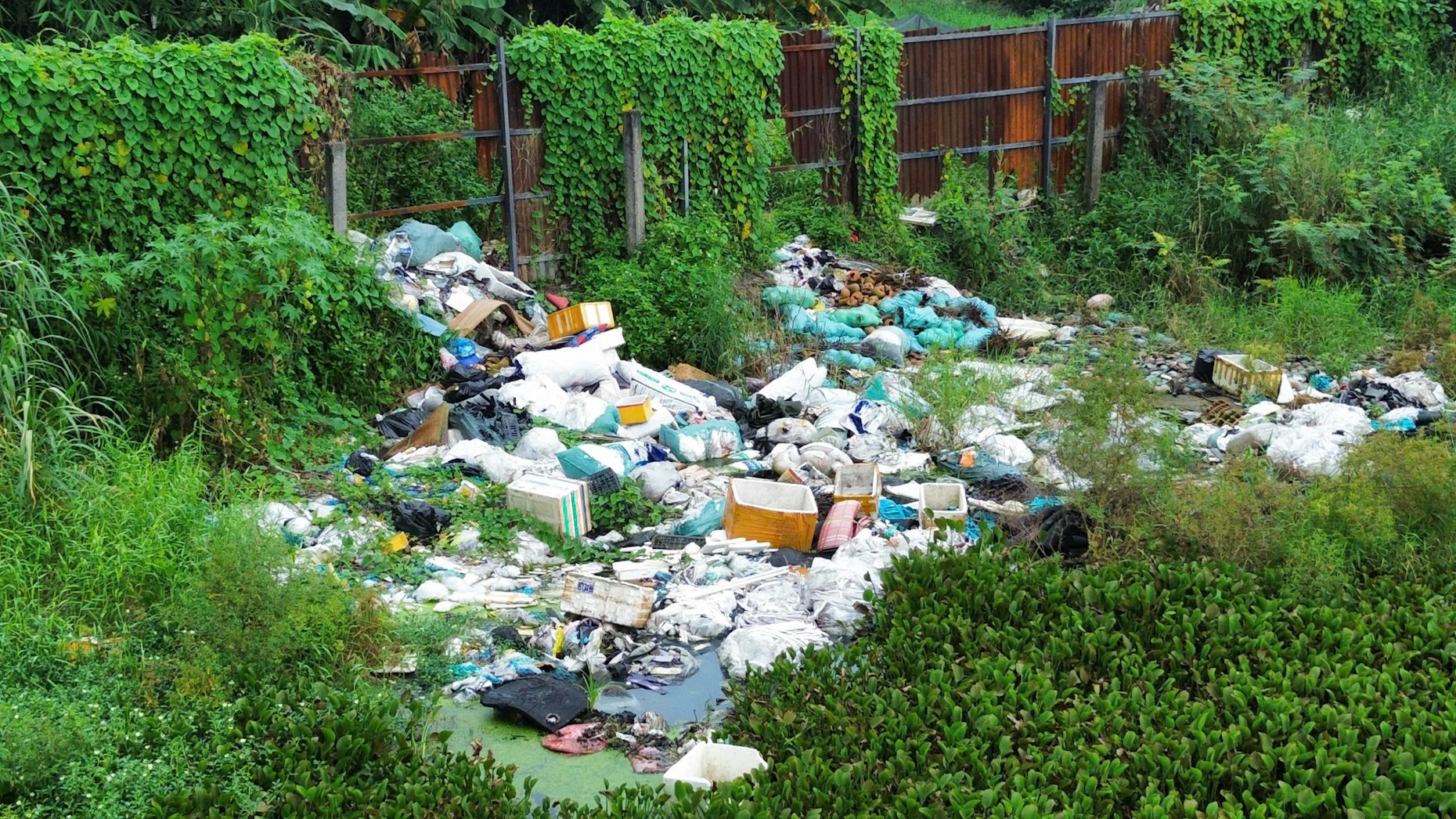 Khu vực ao cá Tân Chánh Hiệp vốn là vùng ngập nước, rác thải bủa vây. Ảnh: TK