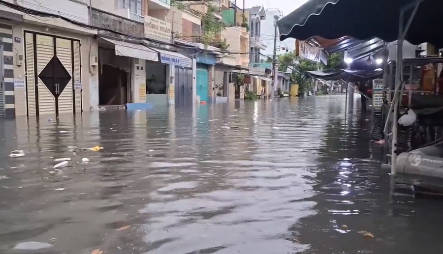 Các khu phố quanh chợ Thủ Đức ngập nặng sau mưa. Ảnh: M.Q