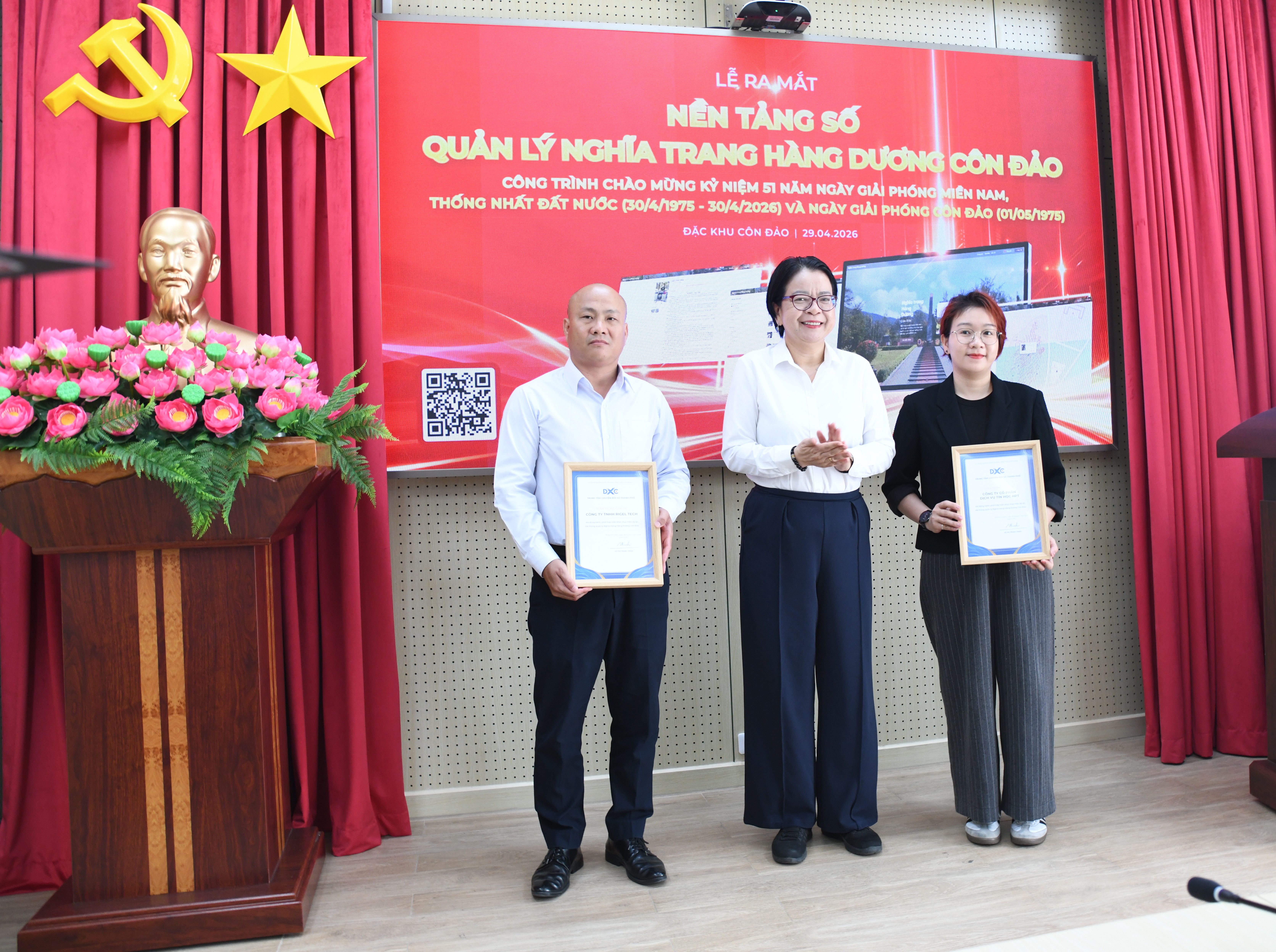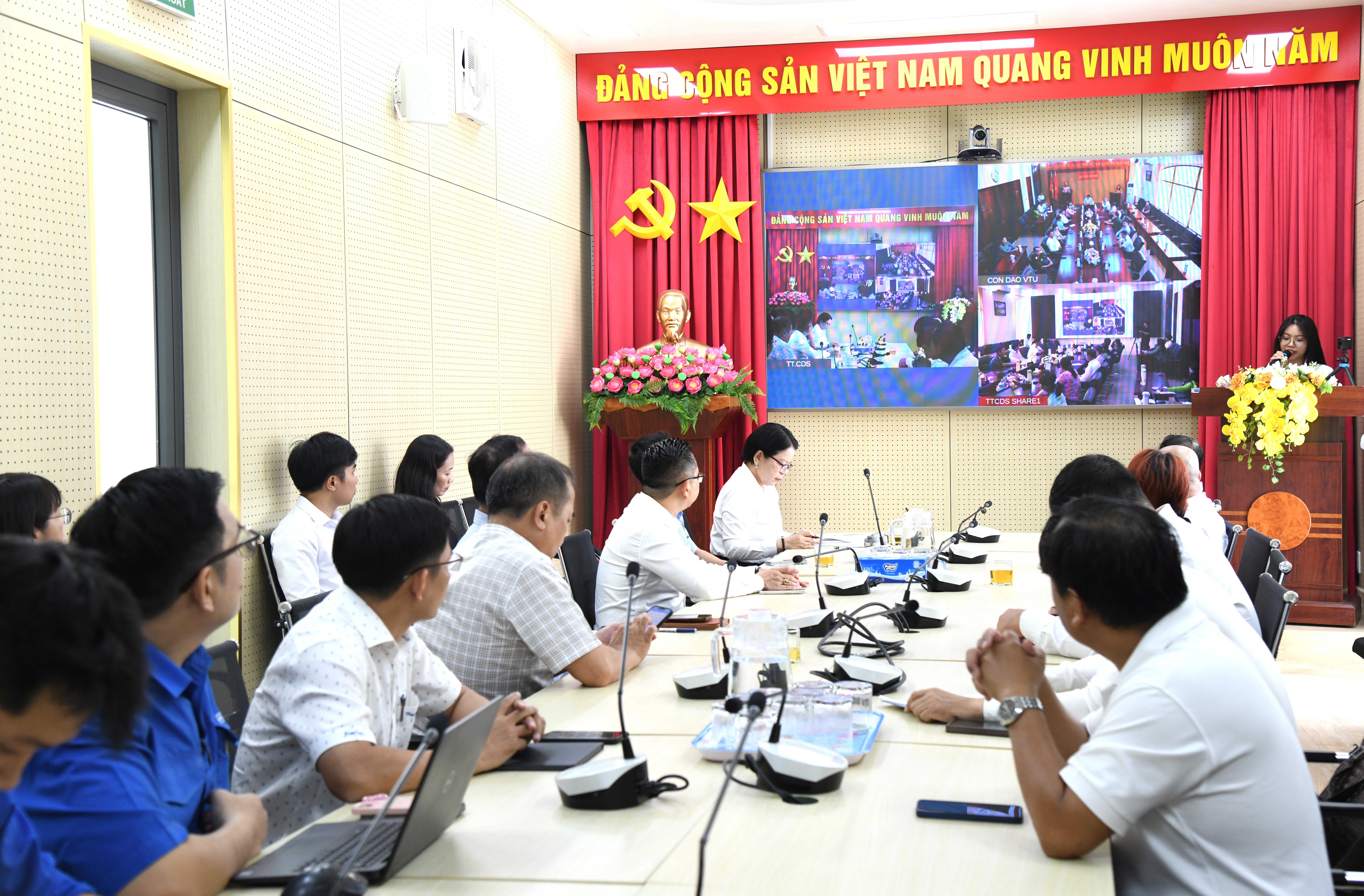 Buổi lễ được tổ chức tại điểm cầu Trung tâm chuyển đổi số TPHCM và kết nối trực tuyến đến đặc khu Côn Đảo