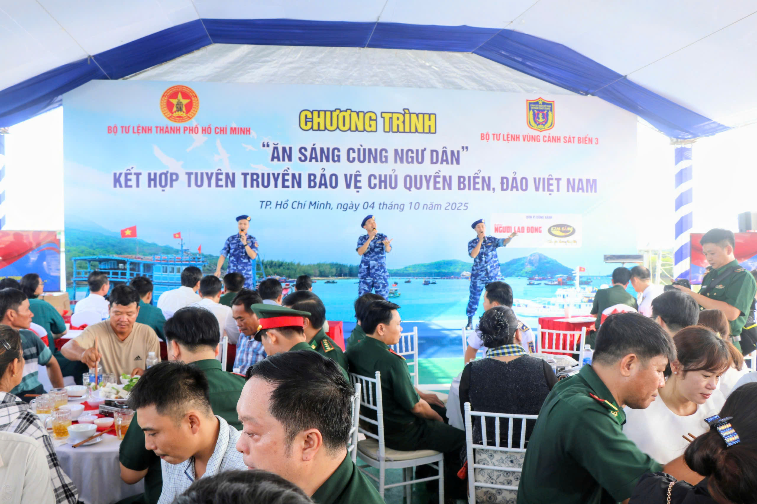 Sáng 4-10, Bộ Tư lệnh TPHCM phối hợp Bộ Tư lệnh Vùng Cảnh sát biển 3 tổ chức chương trình “Ăn sáng cùng ngư dân”, kết hợp tuyên truyền bảo vệ chủ quyền biển, đảo Việt Nam.