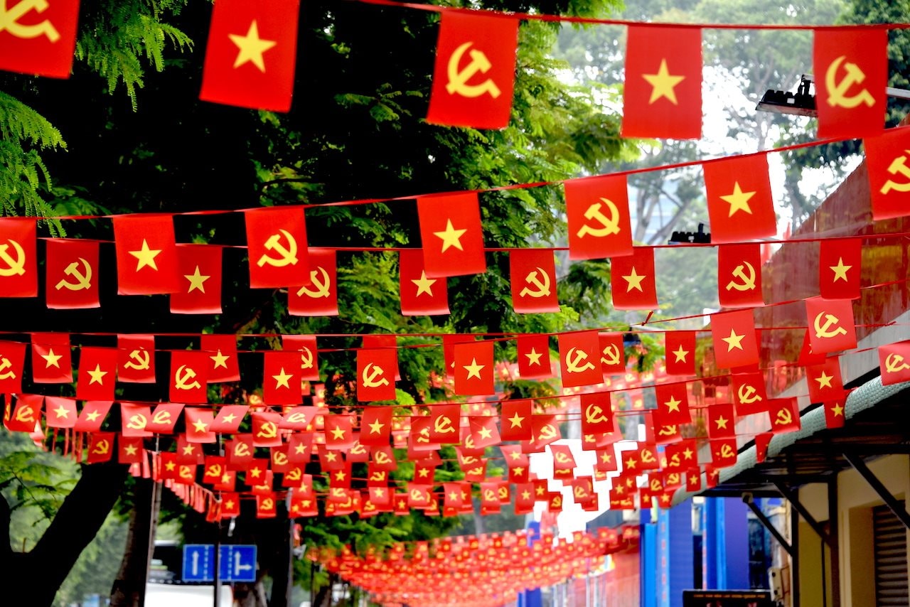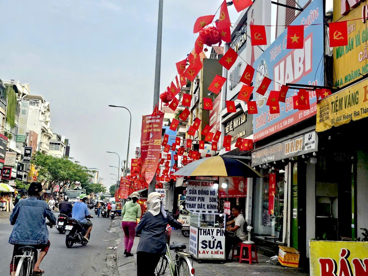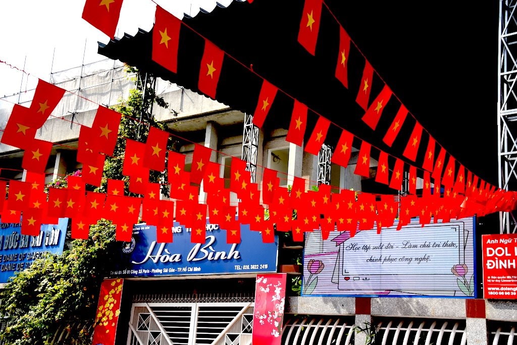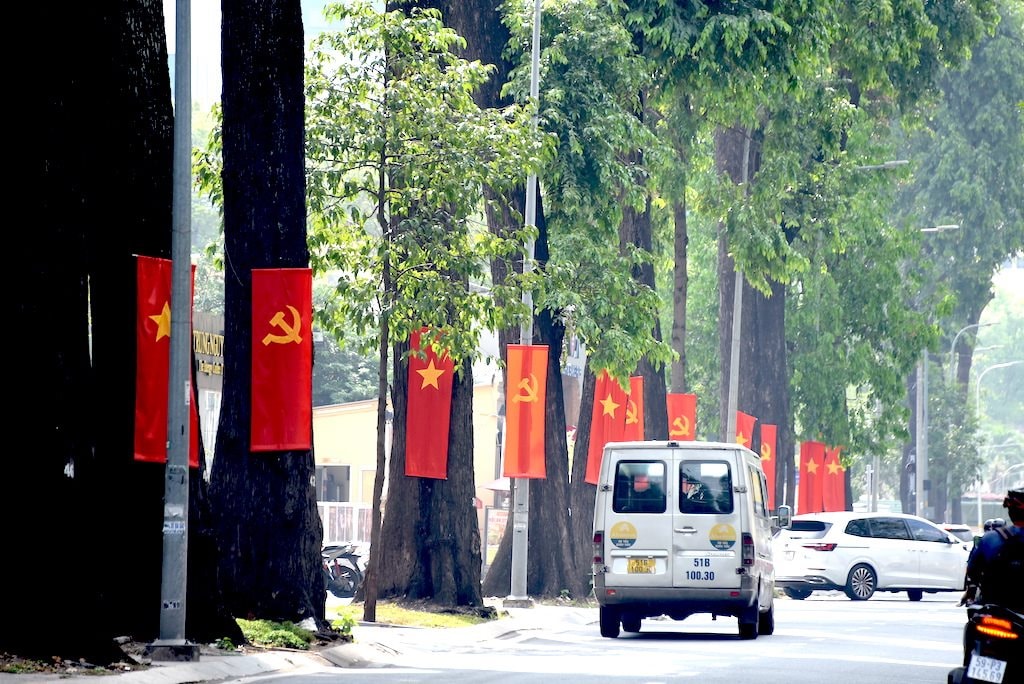 Đường phố TPHCM ngập tràn cờ Đảng, cờ Tổ quốc.
