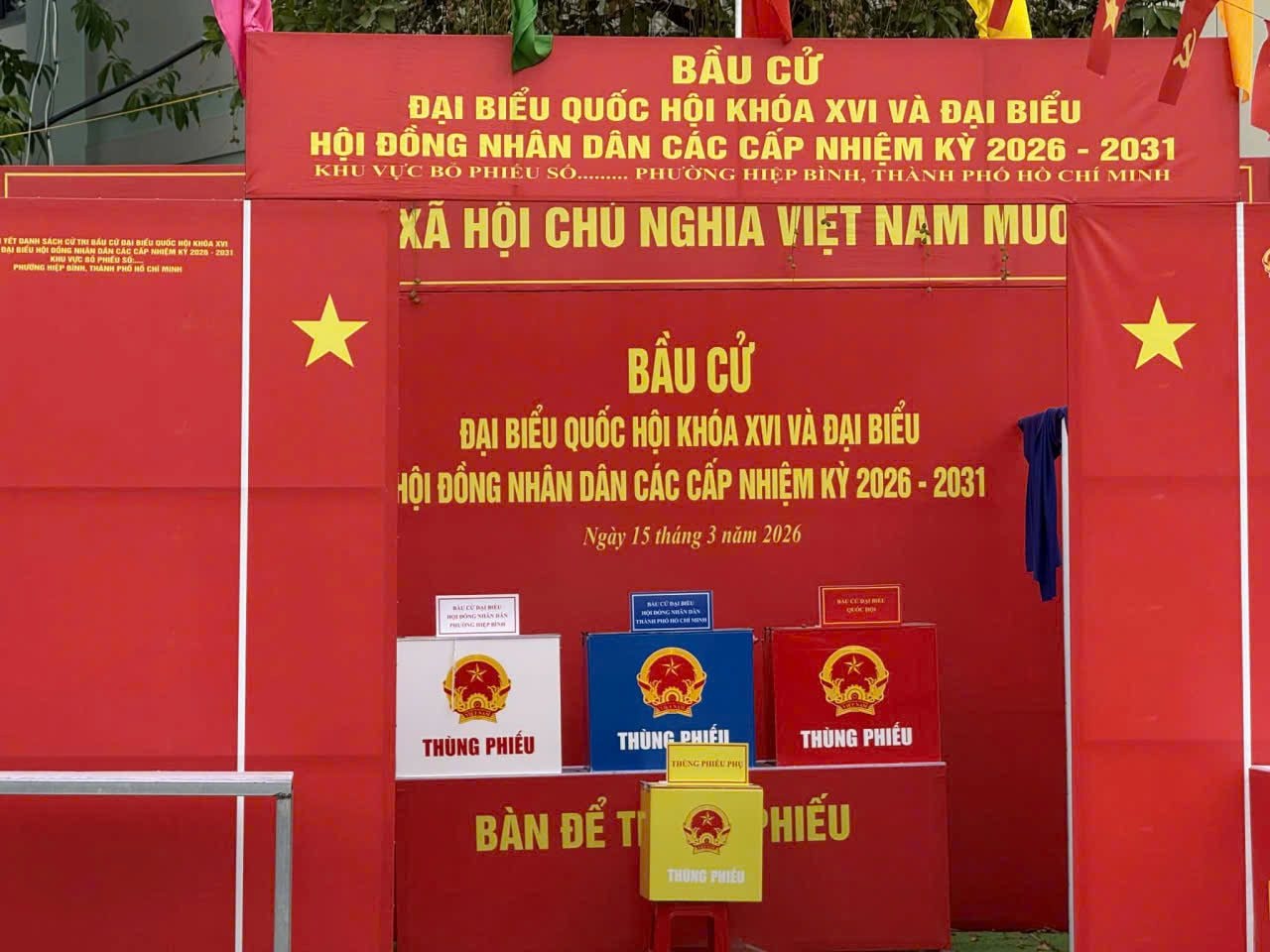 Khu vực hòm phiếu trước Trung tâm Phục vụ hành chính công phường Hiệp Bình.