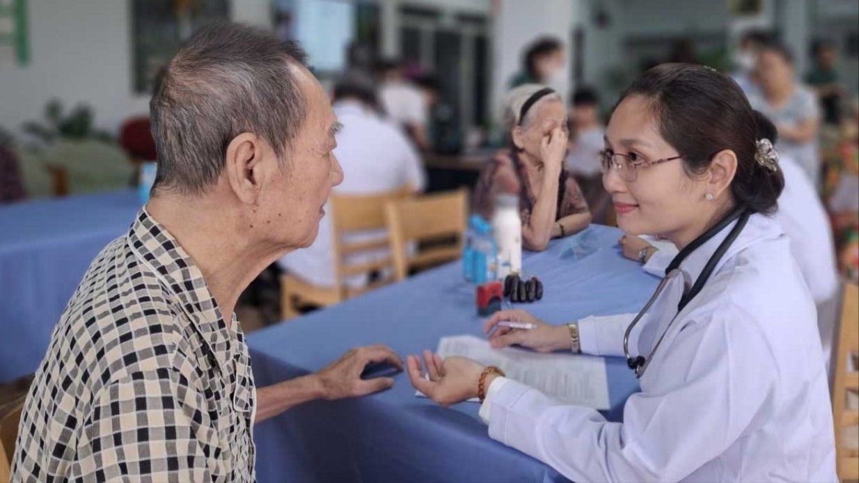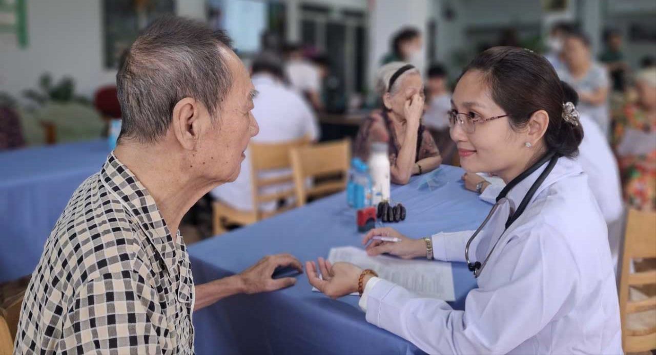Nhân viên Trung tâm y tế khu vực Thủ Đức (TPHCM) thăm khám sức khỏe cho người cao tuổi. Ảnh: MINH NAM