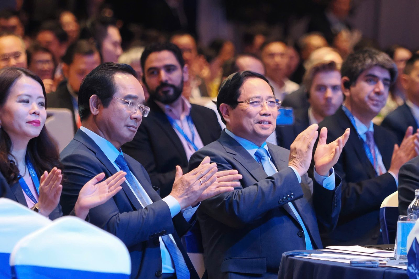 Thủ tướng Phạm Minh Chính, Chủ tịch UBND TPHCM Nguyễn Văn Được và các đại biểu dự Diễn đàn Kinh tế mùa thu 2025. Ảnh: HOÀNG HÙNG