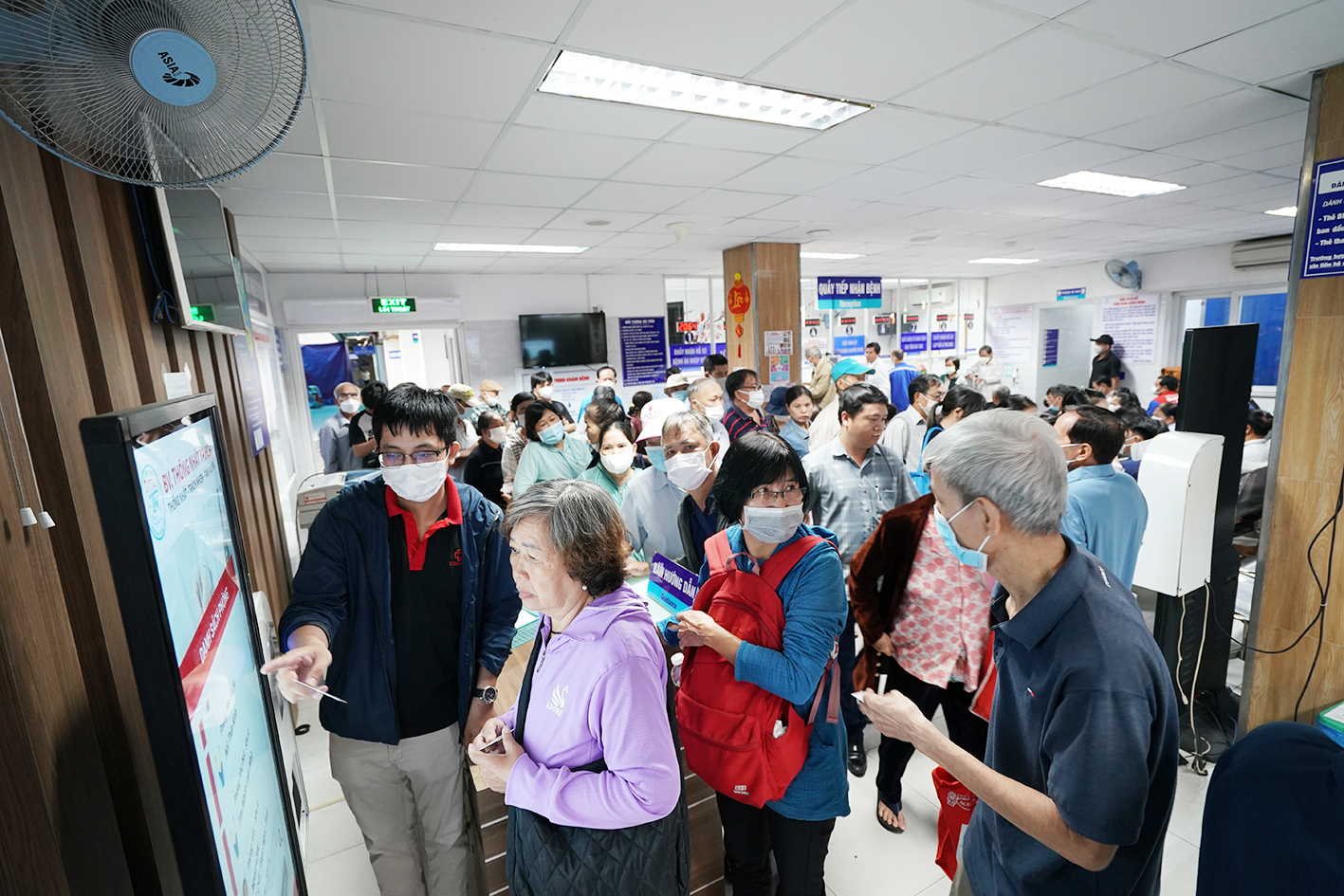 Người dân đăng ký khám chữa bệnh trên hệ thống tự động của Bệnh viện Thống Nhất, TPHCM. Ảnh: Hoàng Hùng