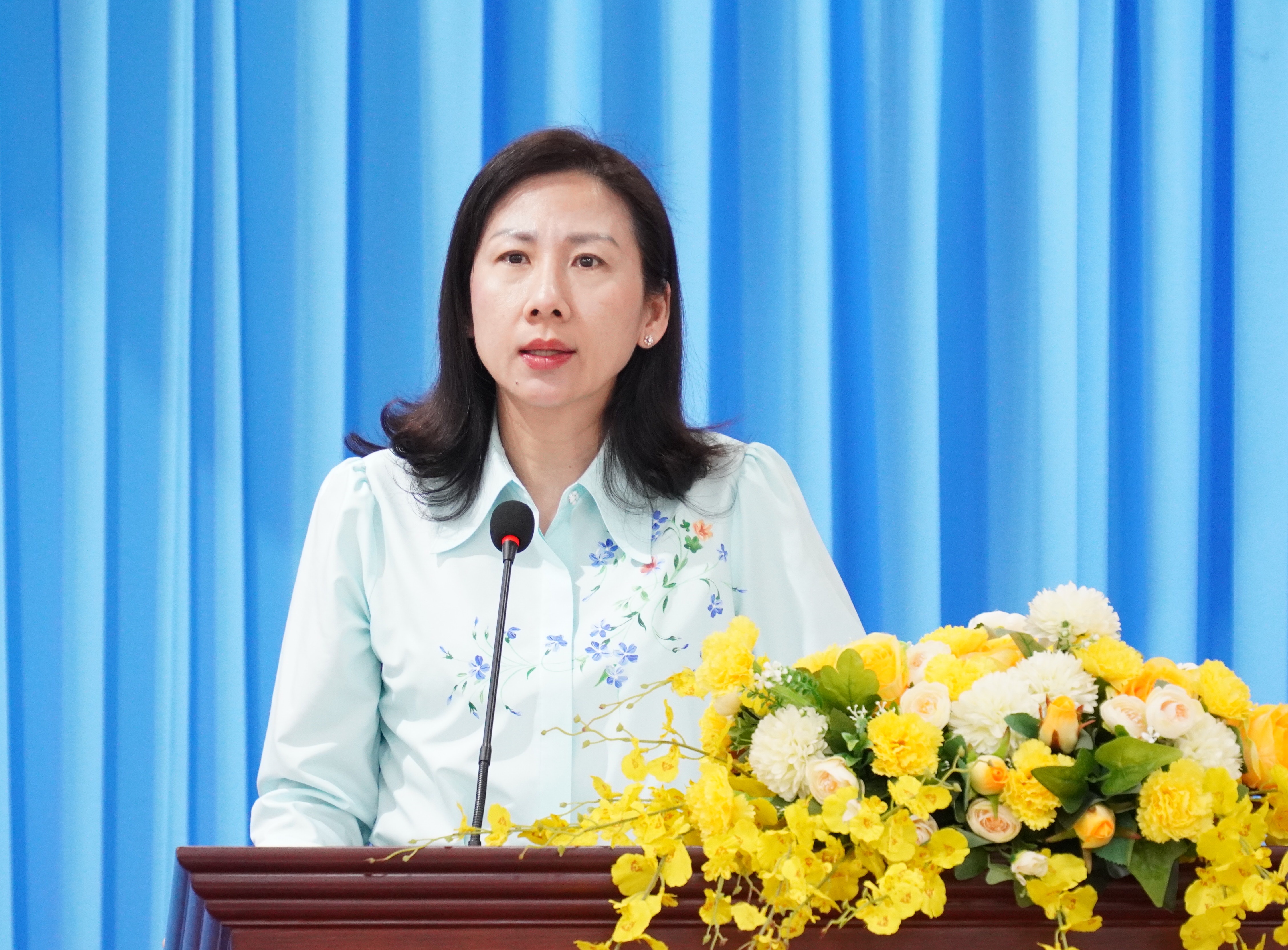 Giám đốc Sở Nội vụ TPHCM Phạm Thị Thanh Hiền phát biểu tại hội nghị