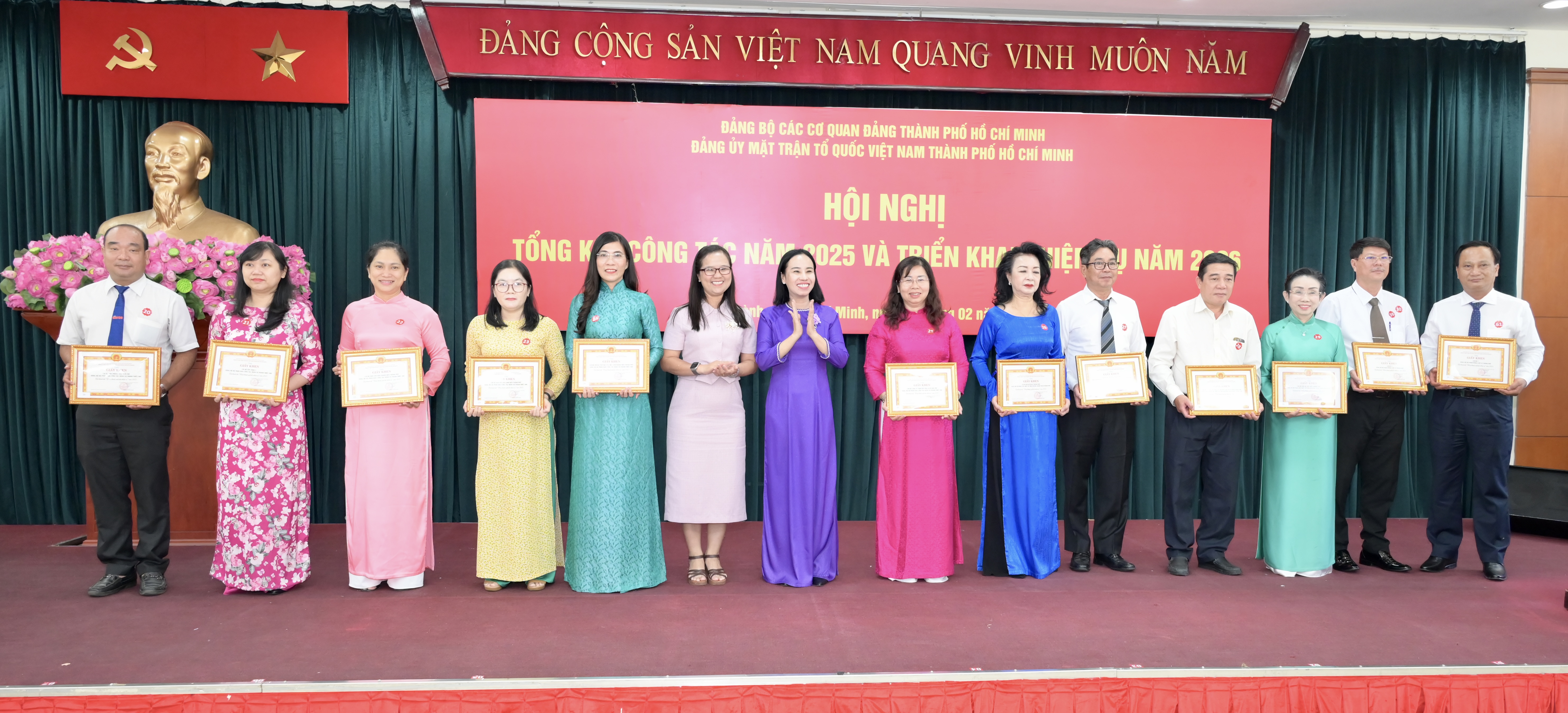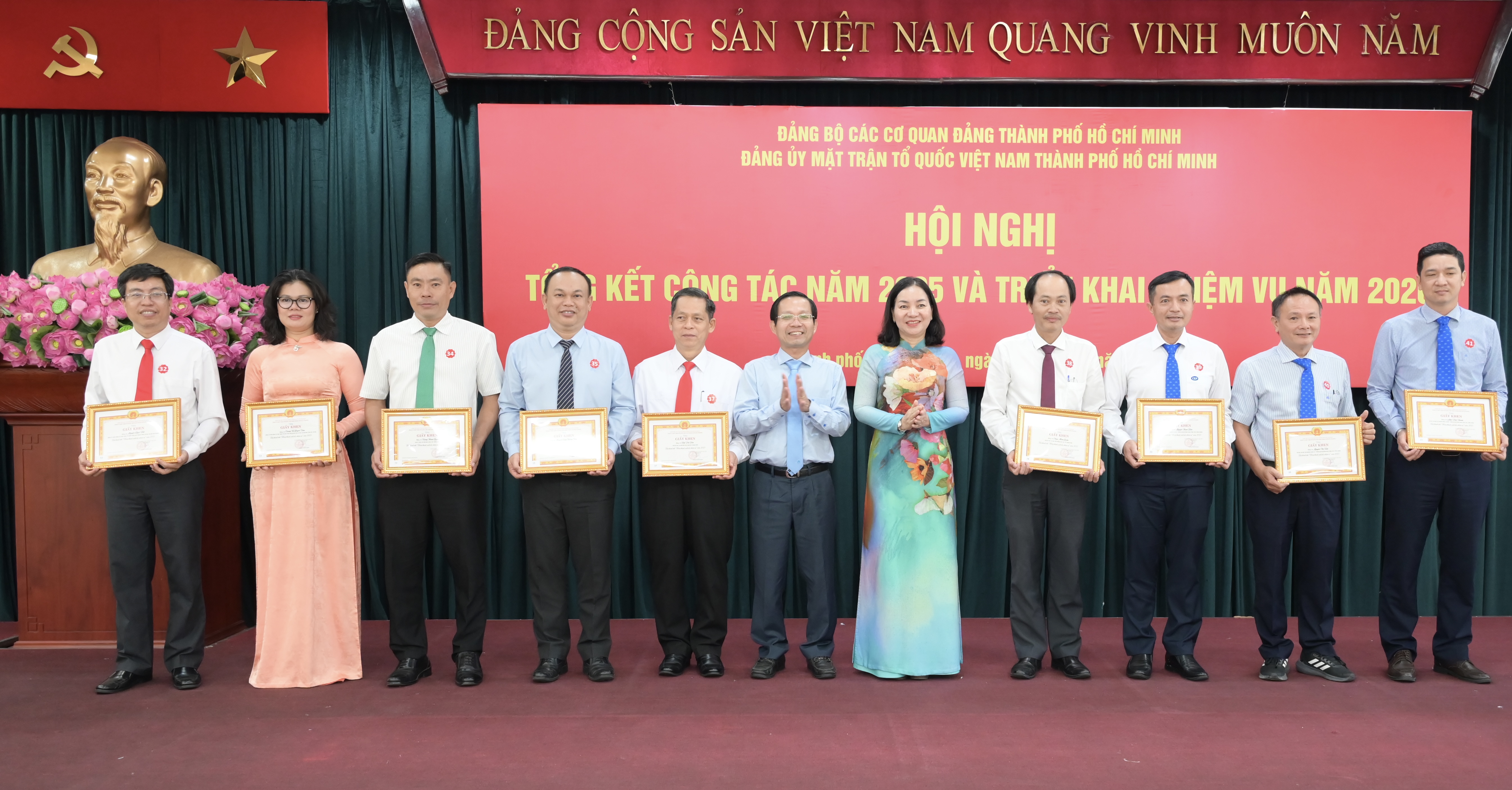 Dịp này, 6 Đảng bộ bộ phận, chi bộ trực thuộc Đảng bộ MTTQ Việt Nam TPHCM, 25 chi bộ trực thuộc Đảng bộ bộ phận và 280 đảng viên đạt thành tích "Hoàn thành xuất sắc nhiệm vụ" được nhận giấy khen.