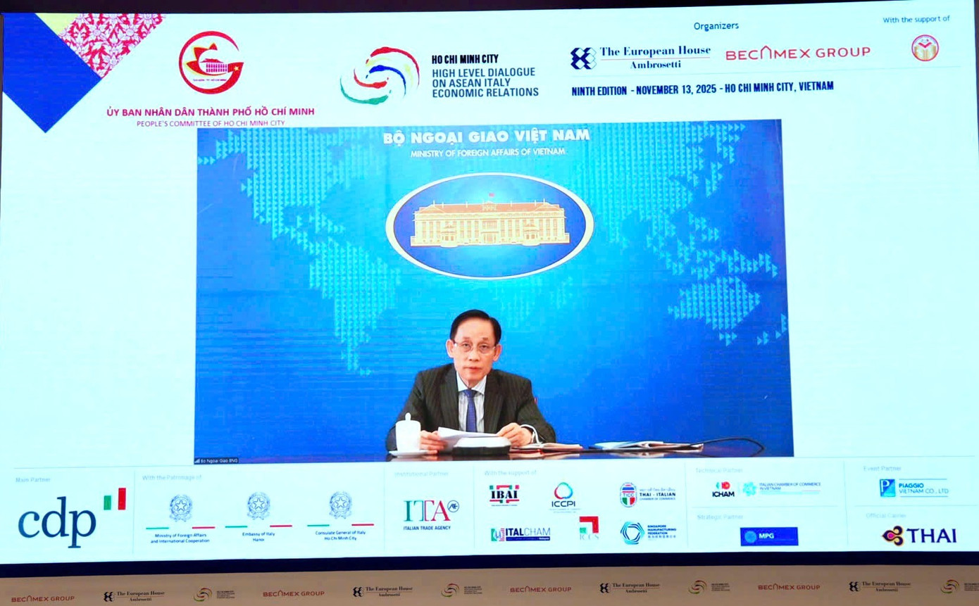 "TPHCM - siêu đô thị hướng tới tầm vóc toàn cầu của Đông Nam Á, đang từng bước khẳng định vai trò trung tâm tài chính quốc tế, khoa học - công nghệ và đổi mới sáng tạo của Việt Nam. Việc Đối thoại Cấp cao về Quan hệ Kinh tế ASEAN - Italia năm 2025 được tổ chức tại TPHCM mang ý nghĩa đặc biệt", Bộ trưởng Bộ Ngoại giao khẳng định.