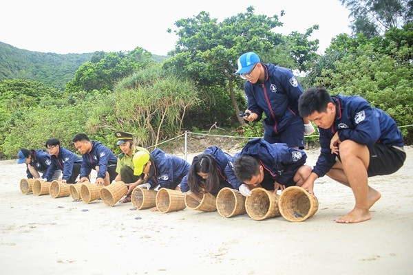 Hạt Kiểm lâm Vườn Quốc gia Côn Đảo cùng với tình nguyện viên thực hiện các hoạt động bảo tồn thiên nhiên - Thả rùa biển. Ảnh tư liệu