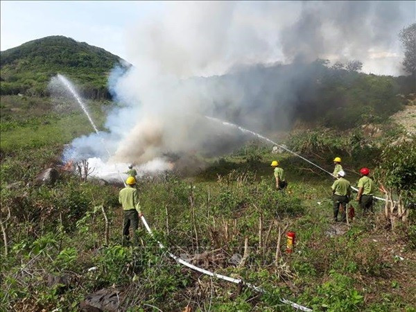 Lực lượng Kiểm lâm Vườn Quốc gia Côn Đảo diễn tập phòng cháy, chữa cháy rừng. Ảnh tư liệu