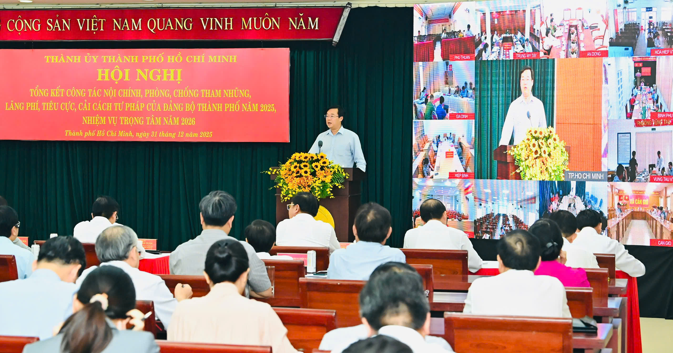 Chiều 31-12, Thành ủy TPHCM tổ chức hội nghị tổng kết công tác nội chính; phòng, chống tham nhũng, lãng phí, tiêu cực; cải cách tư pháp của Đảng bộ TPHCM năm 2025, nhiệm vụ trọng tâm năm 2026.