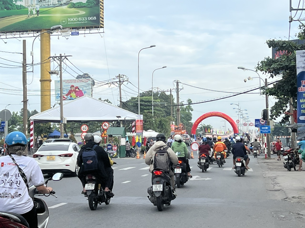 Cắt băng thông xe cầu Bình Triệu 1 trên quốc lộ 13. Ảnh: QUỐC HÙNG