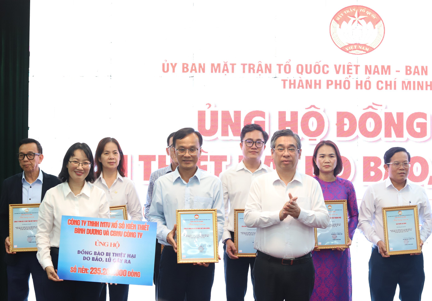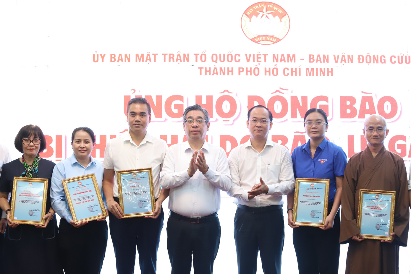 Với tinh thần “Tương thân tương ái”, Ủy ban MTTQ Việt Nam TPHCM đã kêu gọi nhân dân, các cơ quan, tổ chức, doanh nghiệp trên địa bàn dành những sự sẻ chia, giúp đỡ về tinh thần, vật chất, góp phần hỗ trợ đồng bào khắc phục thiệt hại do bão, lũ gây ra. Tính đến 16 giờ ngày 4/10, thành phố đã tiếp nhận 1.543 lượt ủng hộ với số tiền hơn 42,4 tỷ đồng.