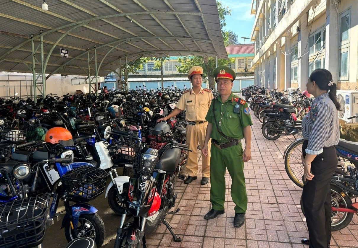 Trong đợt cao điểm này, lực lượng CSGT tiến hành kiểm tra các bãi xe của trường THPT, THCS và hộ dân quanh khu vực cổng trường, phối hợp cùng ban giám hiệu nhà trường và phụ huynh.
