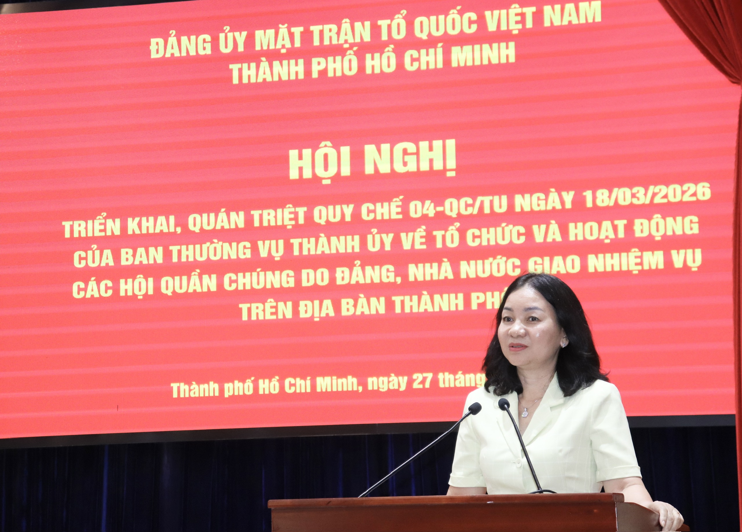 Tại hội nghị, các đại biểu được phổ biến, triển khai những nội dung cốt lõi của Quy chế số 04. Trong đó quy định rõ về chức năng, nhiệm vụ, tổ chức, hoạt động của 31 hội quần chúng do Đảng, Nhà nước giao nhiệm vụ trên địa bàn TPHCM.