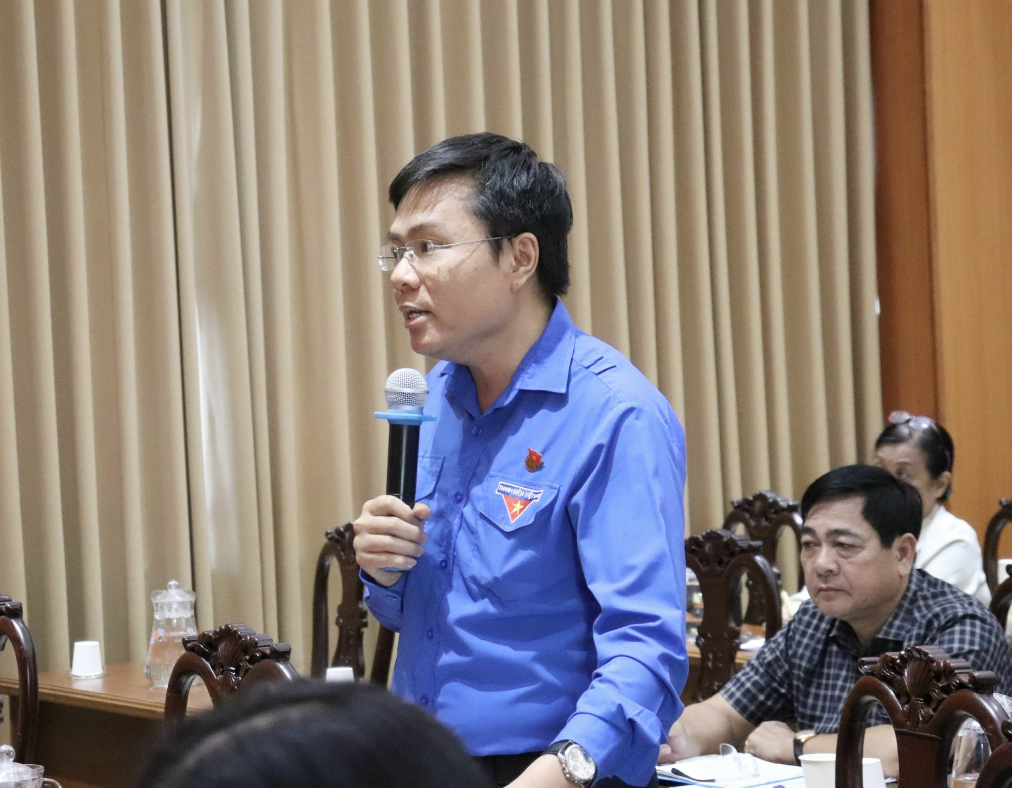 Chủ tịch Hội Sinh viên Việt Nam TPHCM Nguyễn Đăng Khoa trao đổi tại hội nghị