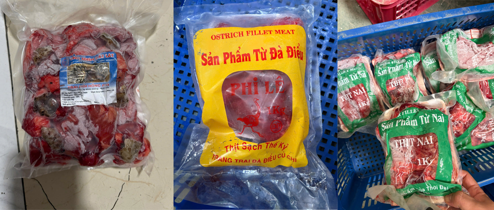 Kết quả đấu tranh chuyên án, cơ quan công an bắt giữ 8 đối tượng. Qua điều tra xác định, từ khoảng cuối năm 2024 đến nay, các đối tượng đã sản xuất, buôn bán ra thị trường hơn 50 tấn hàng giả là sản phẩm từ đà điểu, sản phẩm từ dê - bắp dê úc, sản phẩm từ thịt nhím (thịt nhím cắt lát), sản phẩm từ nai - thịt nai. Các loại thịt giả này được sản xuất từ thịt heo, trị giá tương đương hàng thật khoảng 10 tỷ đồng, thu lợi bất chính hàng tỷ đồng.