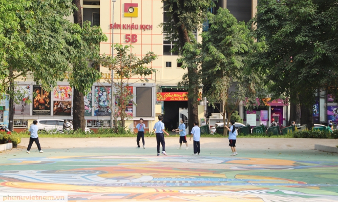 Khu vực sân phẳng lỳ, tranh graffiti trở thành nơi vui chơi của học sinh, sinh viên các trường học xung quanh.