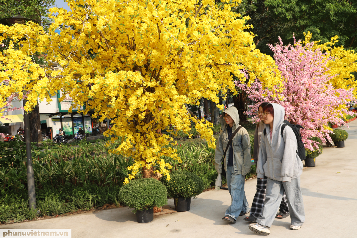 Các tiểu cảnh với hình ảnh của mai vàng, đào được bố trí để người dân có thể check-in khi Tết Bính Ngọ 2026 đang đến gần.