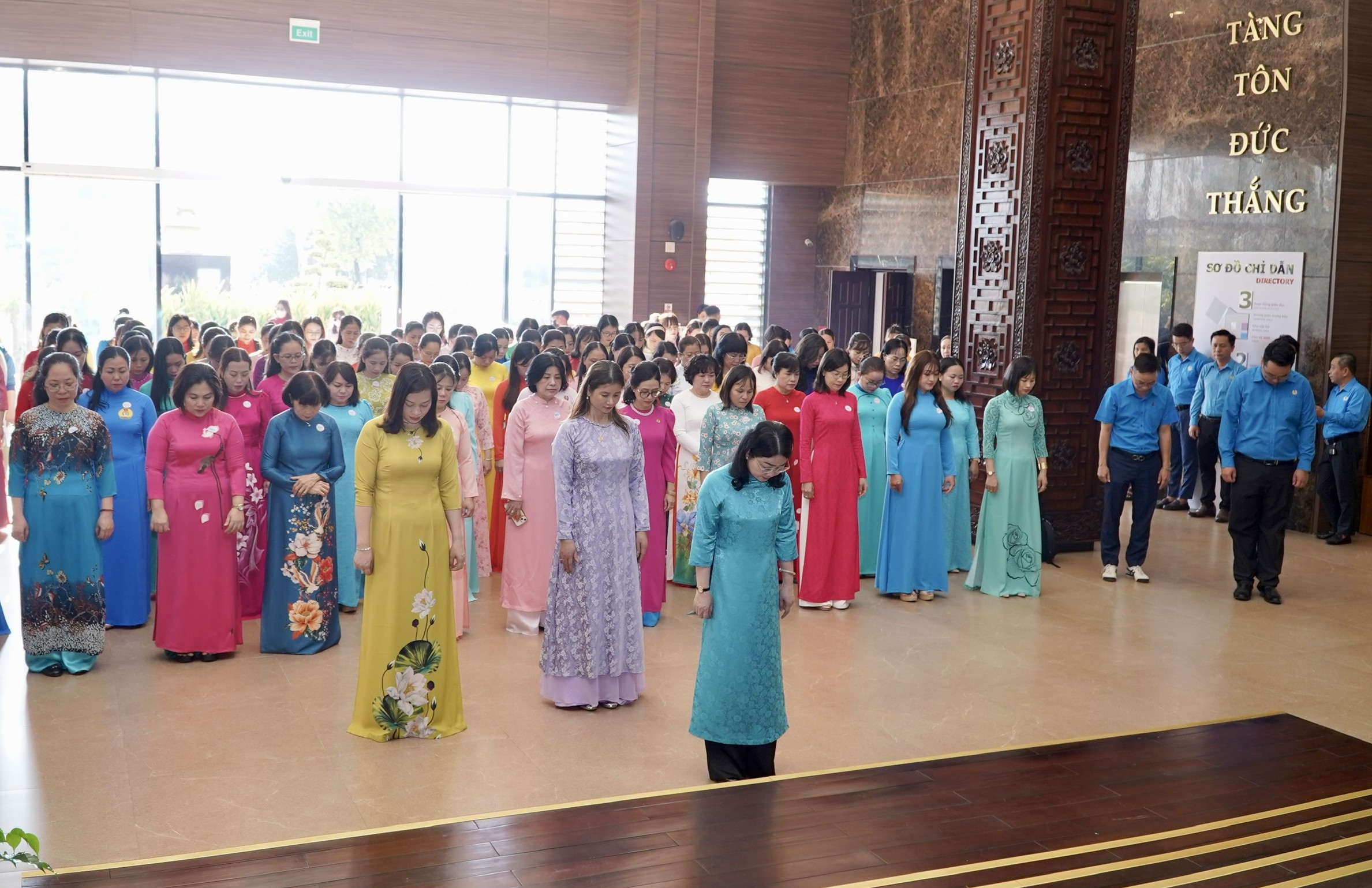 Các cán bộ Công đoàn và nữ CNVC-LĐ tiêu biểu TPHCM tưởng niệm Chủ tịch Tôn Đức Thắng. Ảnh: DUY PHÚ
