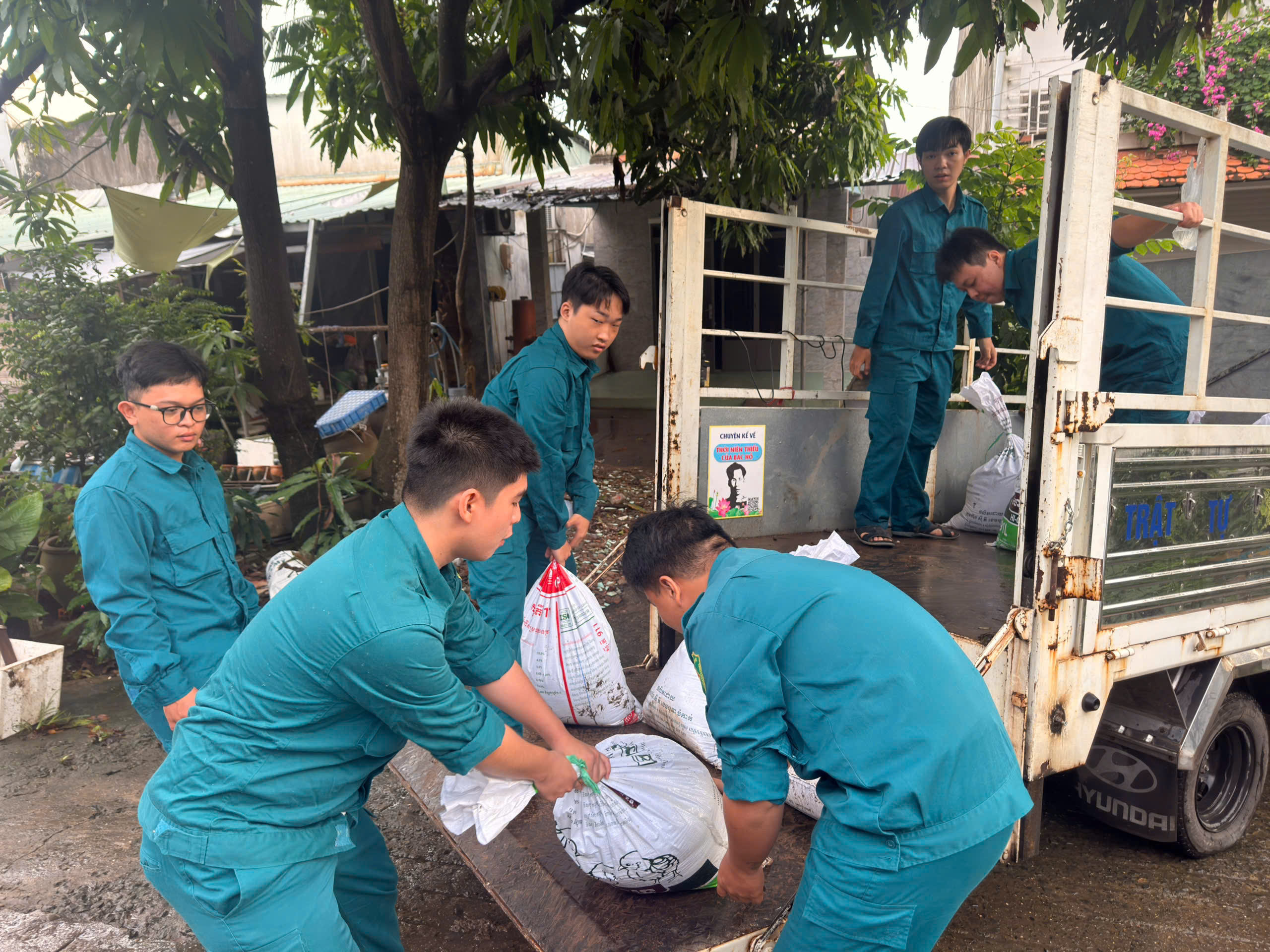 Lực lượng quân sự phường Thuận An, TPHCM hỗ trợ người dân ứng phó triều cường
