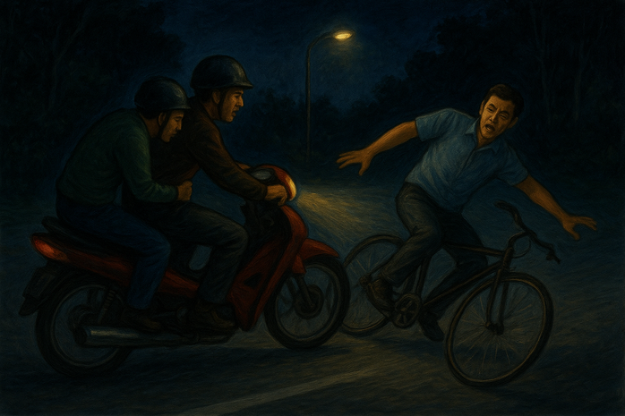 Khi đến giao lộ Dương Công Khi – Huỳnh Thị Tươi (huyện Hóc Môn cũ, TPHCM), xe máy do M. điều khiển va chạm vào đuôi xe đạp của ông Nguyễn Minh H. đang chạy phía trước. Cú tông mạnh khiến ông H. bị thương nặng, được đưa đi cấp cứu nhưng tử vong ngày 4-10-2024. Kết luận giám định pháp y xác định nạn nhân chết do chấn thương sọ não.
