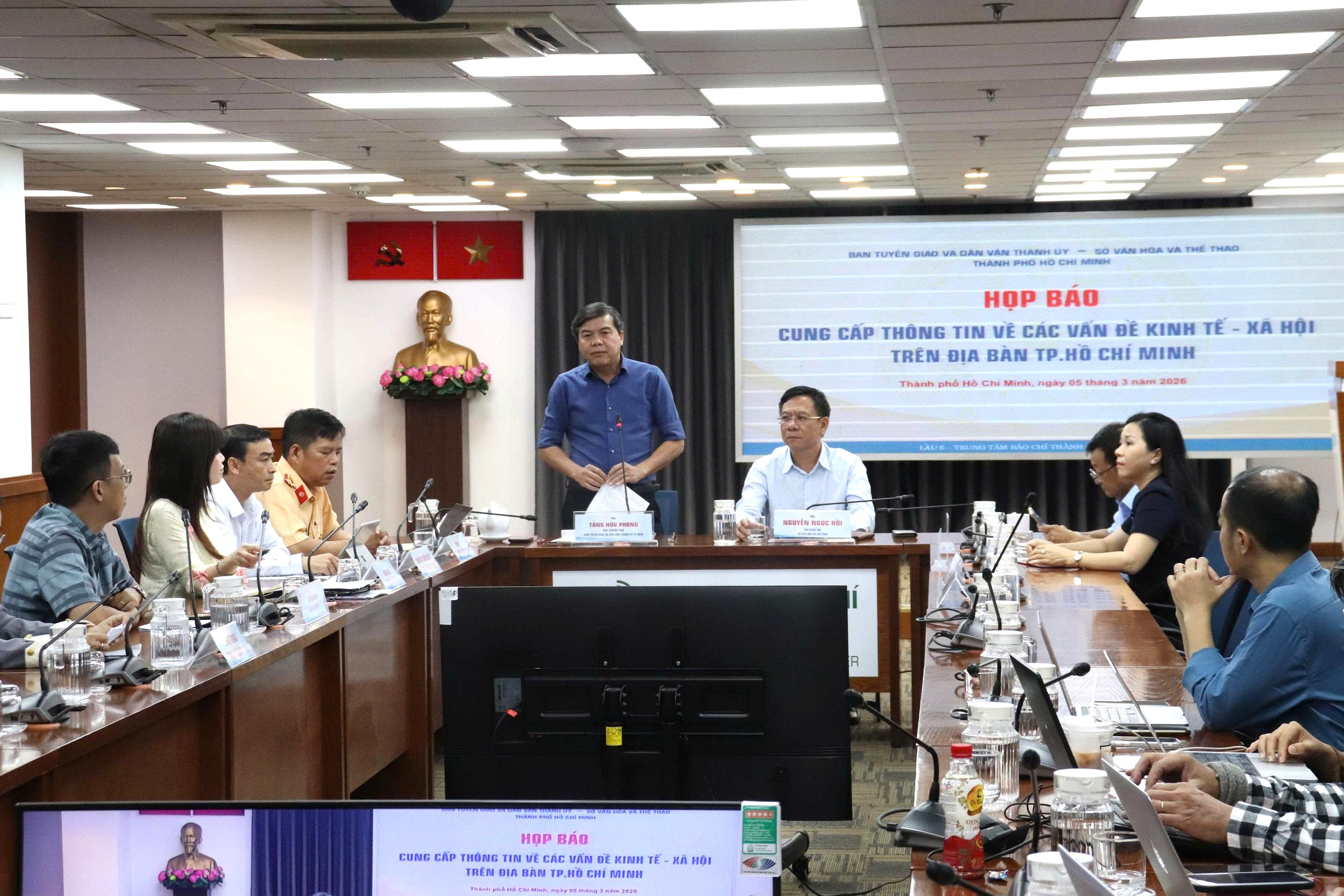 Chiều 5-3, Ban Tuyên giáo và Dân vận Thành ủy TPHCM phối hợp Sở VH-TT TPHCM tổ chức họp báo cung cấp thông tin về các vấn đề kinh tế - xã hội trên địa bàn TPHCM.