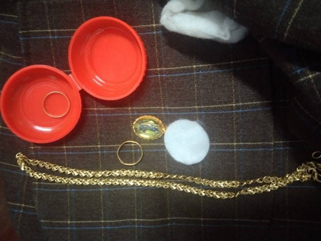 Khi kiểm tra một chiếc áo khoác, nhóm phát hiện bên trong có nhiều tài sản bằng vàng, gồm một dây chuyền, hai nhẫn và một mặt tượng, với tổng giá trị khoảng 0,45 cây vàng.