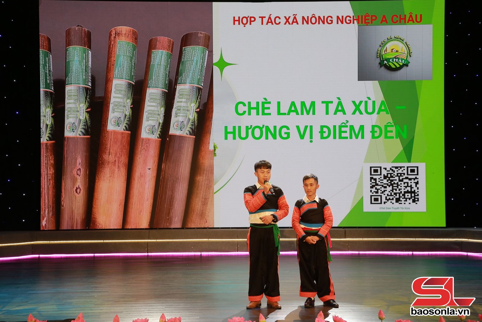 Nhóm tác giả dự án "Trà lam Tà Xùa - Hương vị điểm đến" giới thiệu sản phẩm tại Cuộc thi “Tìm kiếm tài năng khởi nghiệp đổi mới sáng tạo tỉnh Sơn La lần thứ hai” năm 2025.