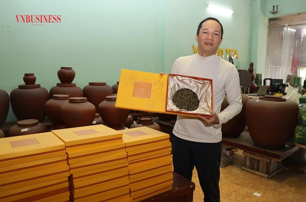 Chia sẻ cùng VnBusiness, anh Hà Đức Thắng, Giám đốc HTX sản xuất chè V-Shantea tại Phù Yên (bản Chiềng Hạ, xã Phù Yên, Sơn La) cho biết, tham gia Hội chợ Mùa Xuân 2026, HTX sẽ đưa những sản phẩm trà phổ nhĩ đặc biệt của Phù Yên (Sơn La) để trưng bày tại Hội chợ. Trong số đó có thể kể đến những bánh trà phổ nhĩ hàng trăm năm tuổi cùng những chum trà phổ nhĩ rời và chum trà phổ nhĩ bánh,...