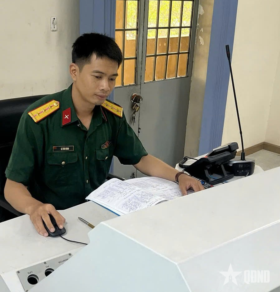 Thượng úy QNCN Lê Văn Khoa trong giờ trực.