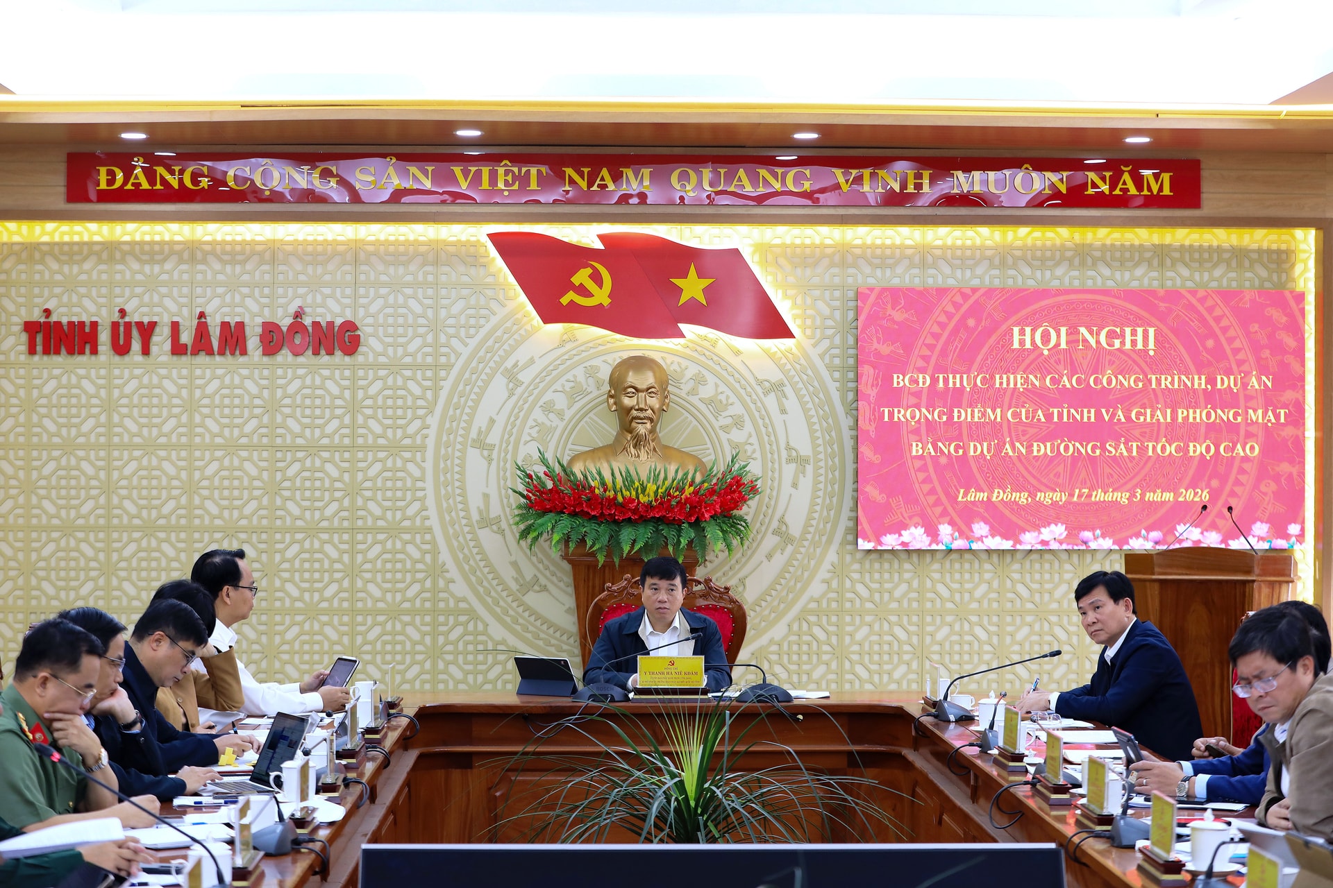 Sáng 17/3, Ủy viên Ban Chấp hành Trung ương Đảng, Bí thư Tỉnh ủy, Trưởng Đoàn ĐBQH tỉnh Lâm Đồng Y Thanh Hà Niê Kđăm chủ trì họp Ban Chỉ đạo các công trình, dự án trọng điểm và giải phóng mặt bằng dự án đường sắt tốc độ cao qua địa bàn Lâm Đồng.