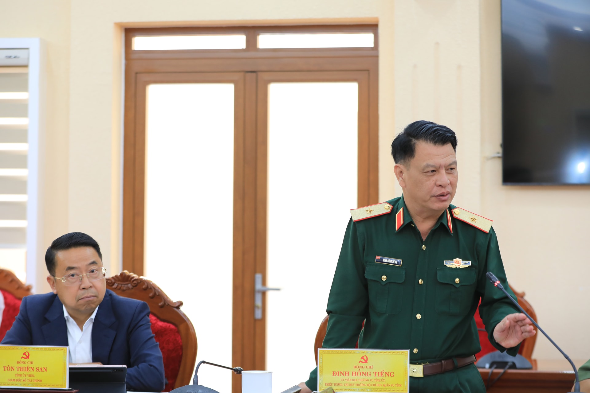 Thiếu tướng Đinh Hồng Tiếng, Ủy viên Ban Thường vụ Tỉnh ủy, Chỉ huy trưởng Bộ CHQS tỉnh Lâm Đồng thông tin về công tác phối hợp để thống nhất thực hiện các dự án