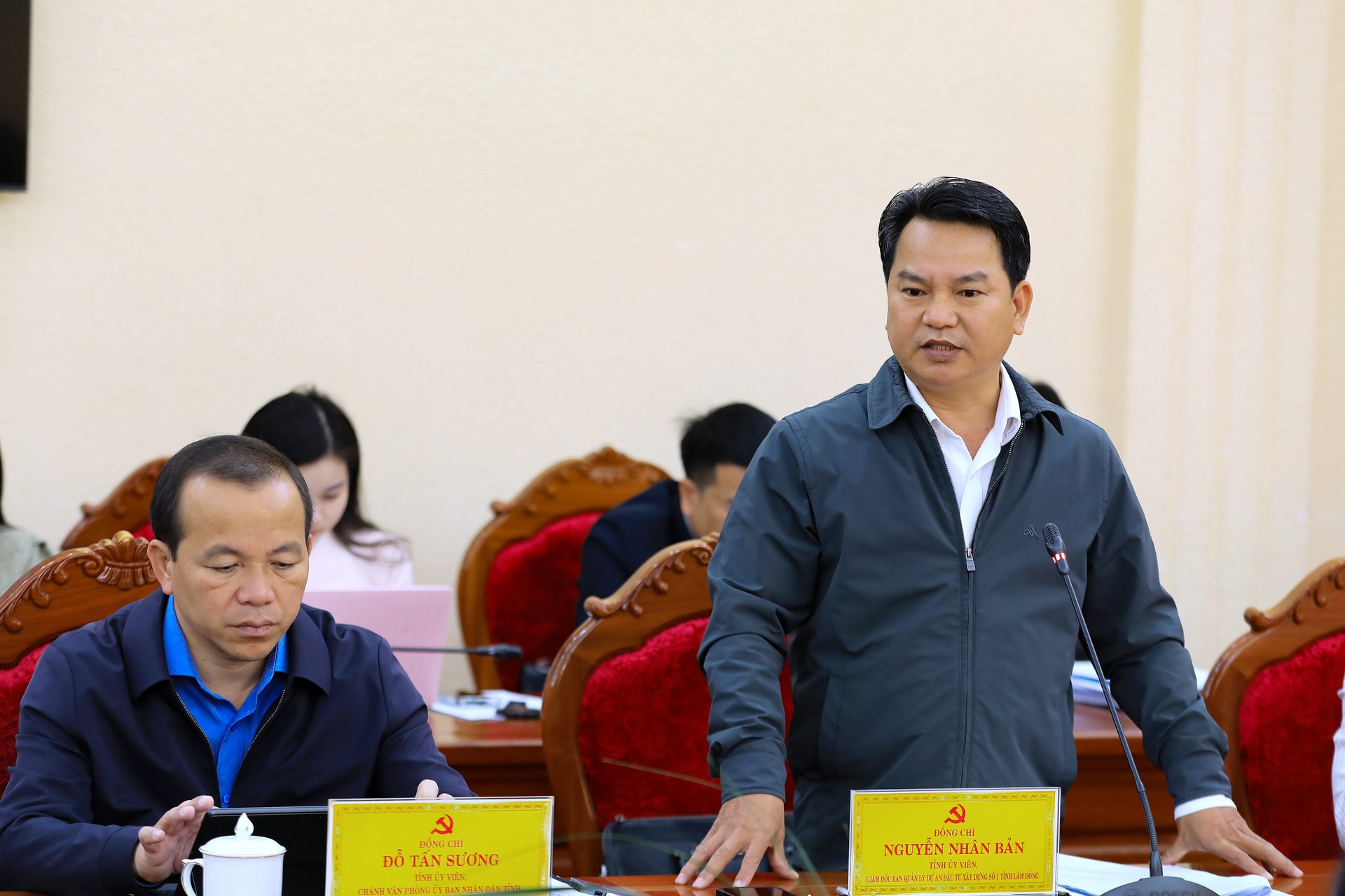 Giám đốc Sở Tài chính Lâm Đồng Tôn Thiện San báo cáo tình hình thực hiện các công trình, dự án trọng điểm của tỉnh và giải phóng mặt bằng Dự án đường sắt tốc độ cao