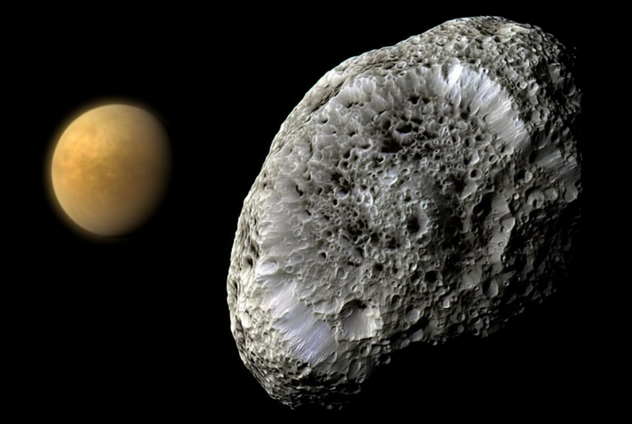 Mặt Trăng Hyperion kỳ dị hiện tại có thể chỉ là những mảnh vụn kết tụ từ sự kiện Titan "nuốt chửng" phiên bản ban đầu của Hyperion - Ảnh: NASA