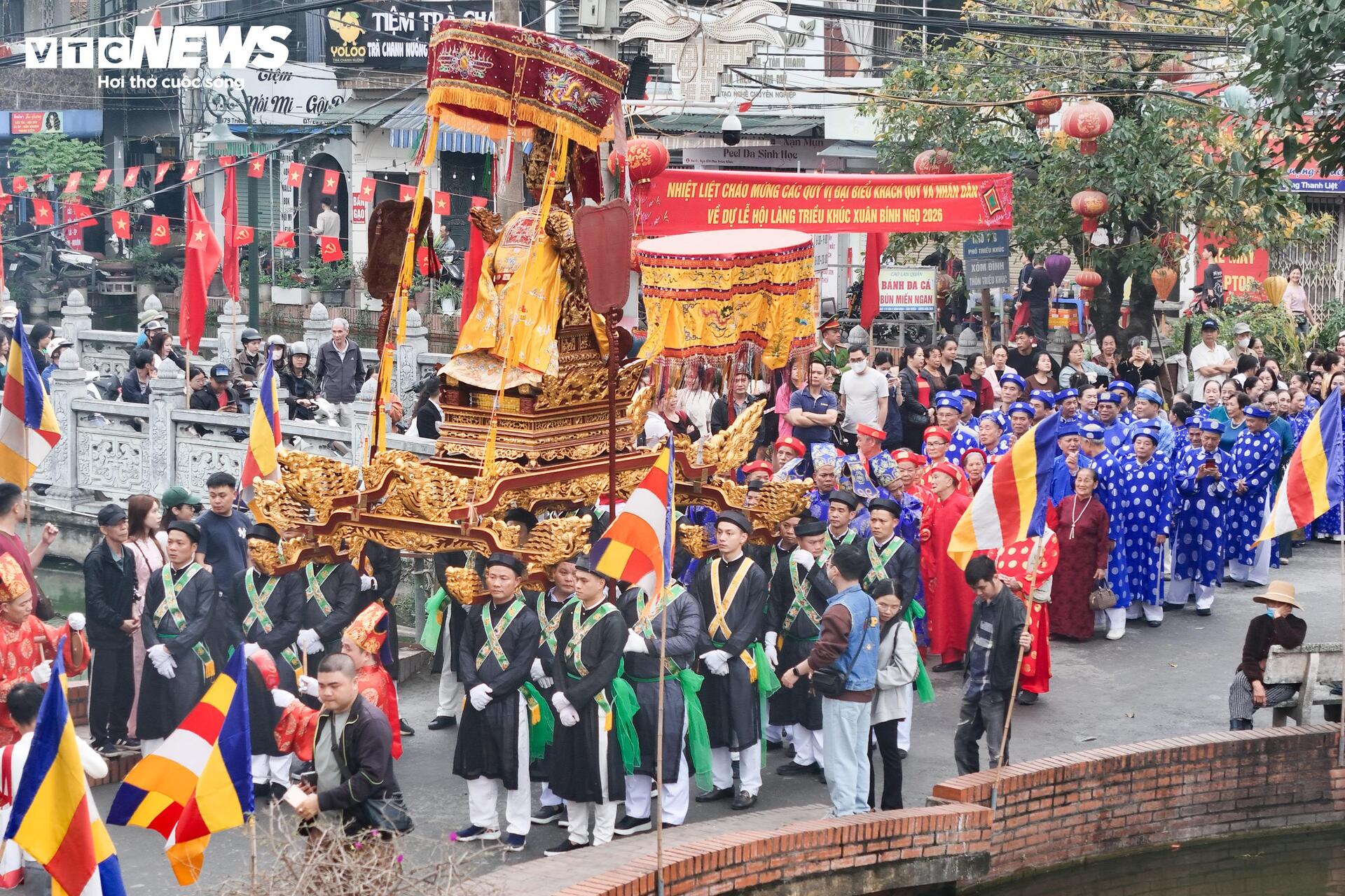 Lễ hội mở màn bằng nghi thức rước long bào và triều phục của Vua Phùng Hưng từ đình Sắc về Đại Đình. Đoàn kiệu rước đi qua các trục đường chính của làng Triều Khúc, thu hút sự theo dõi đông đảo của người dân địa phương và du khách thập phương.