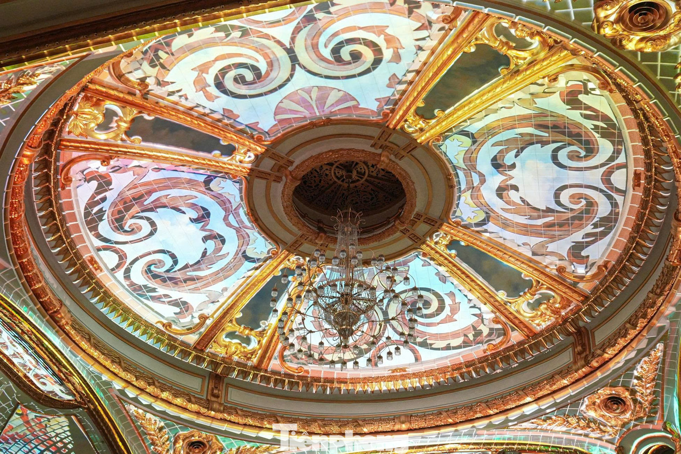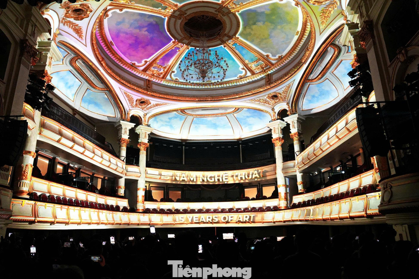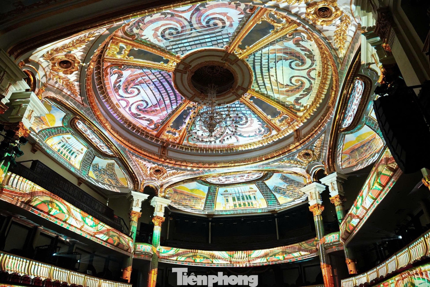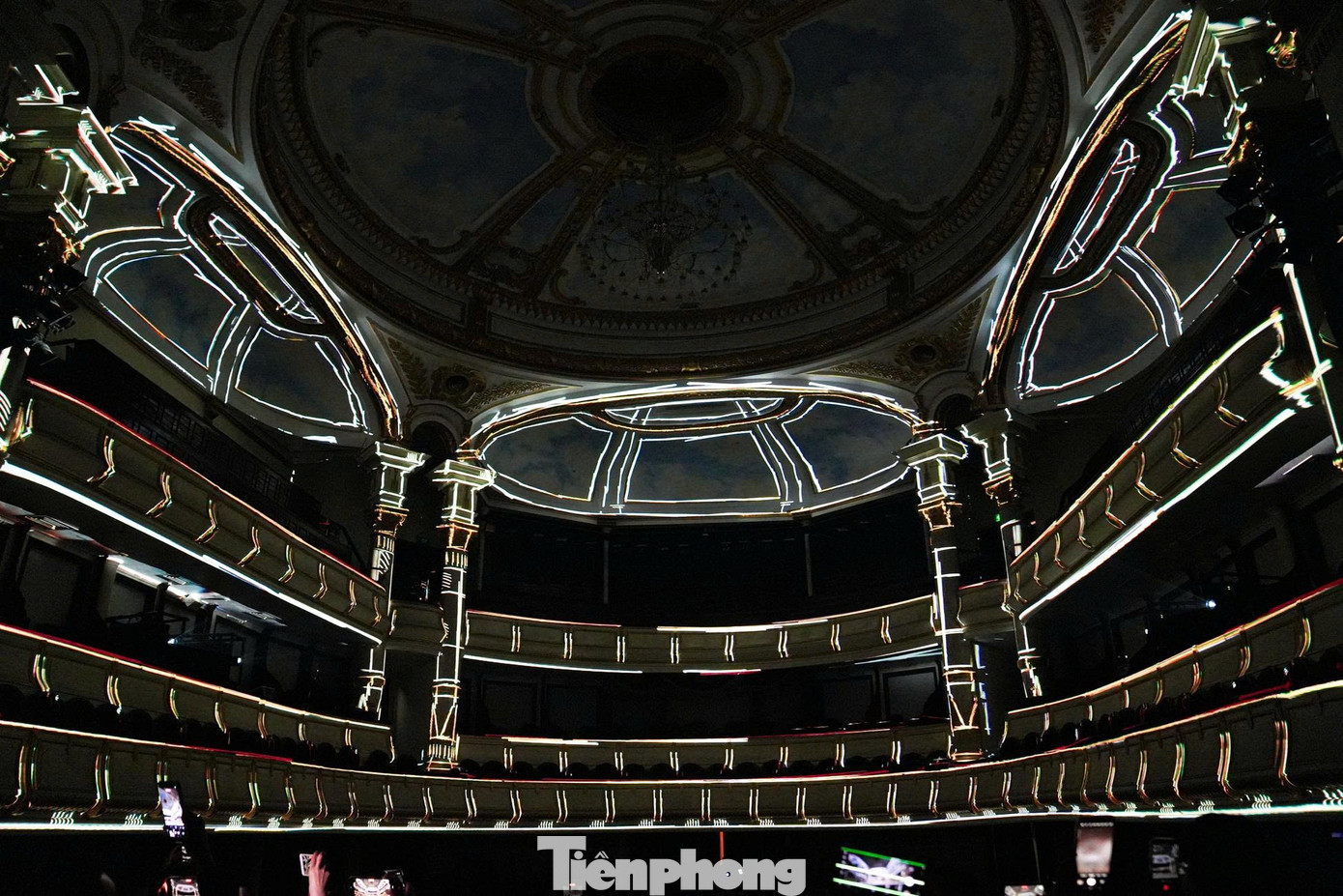 Không gian vừa giữ nguyên vẻ cổ điển, lộng lẫy của nhà hát, vừa được bổ sung hiệu ứng ánh sáng hiện đại, tạo nên sự kết hợp giữa di sản và công nghệ đương đại.