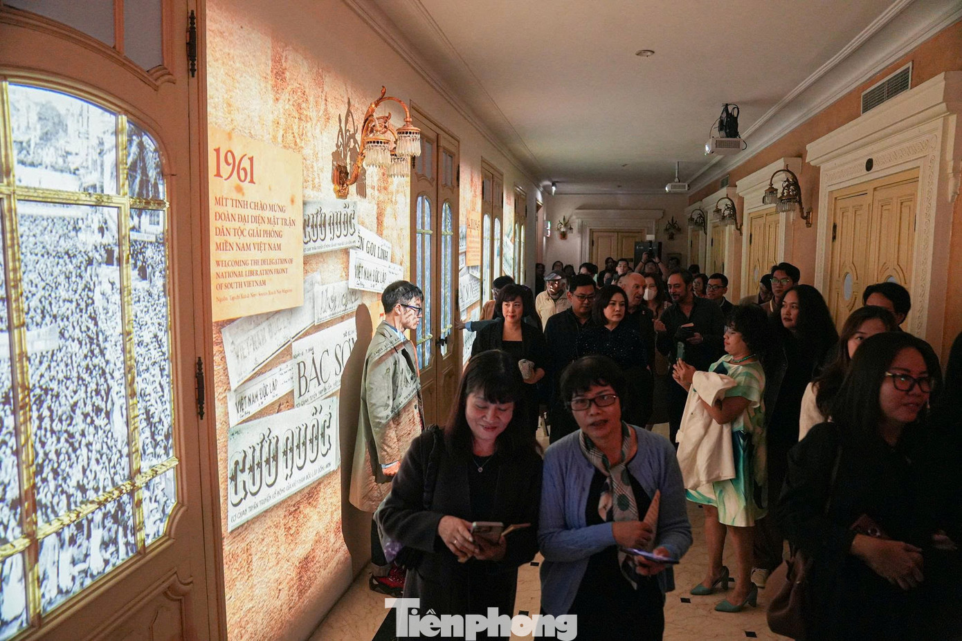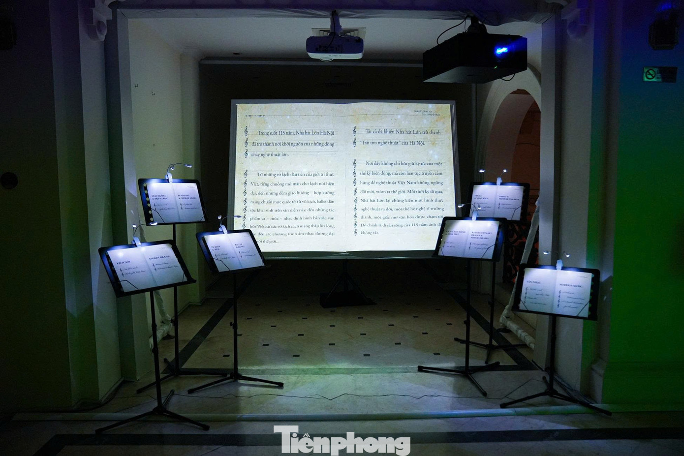 Sau lễ khai mạc, các đại biểu, khách mời bắt đầu trải nghiệm triển lãm công nghệ - nghệ thuật 115 năm Nhà hát kể chuyện. Triển lãm được thiết kế như hành trình xuyên suốt bên trong Nhà hát Lớn Hà Nội, với hệ thống trình chiếu ánh sáng mapping, đồ họa chuyển động và âm thanh đa hướng.
