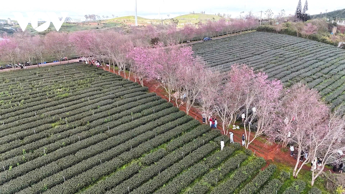 “Hoa mai anh đào trên vùng trà Cầu Đất” là chương trình hưởng ứng Lễ hội hoa mai anh đào – Đà Lạt xuân 2026 (kéo dài đến đến 05/2/2026), thu hút đông đảo người dân và du khách tham gia, trải nghiệm không gian mùa xuân giữa đồi trà.
