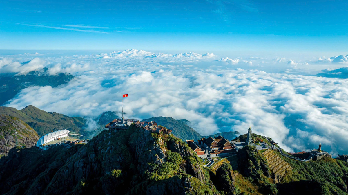 Không chỉ có vẻ đẹp thiên nhiên, Fansipan còn là điểm đến tâm linh linh thiêng bậc nhất Tây Bắc. Giữa không gian mây phủ là quần thể kiến trúc đồ sộ với Đại tượng Phật A Di Đà uy nghiêm, tượng Quan Thế Âm Bồ Tát khoan thai, cùng Thiền viện Bích Vân tĩnh tại. Tiếng chuông chùa ngân vang giữa tầng mây khiến tâm hồn người nghe như được gột rửa, tìm về sự an nhiên hiếm có giữa đất trời bao la. Ảnh Tư Liệu